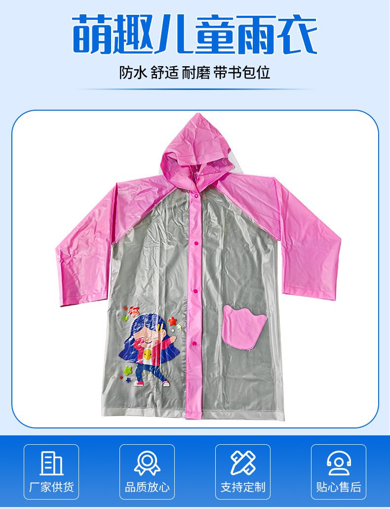 PVC 어린이 만화 비옷 편안하고 부드럽고 편리한 비옷 유치원 초등학생을위한 폭풍우 방지 및 젖은 판초