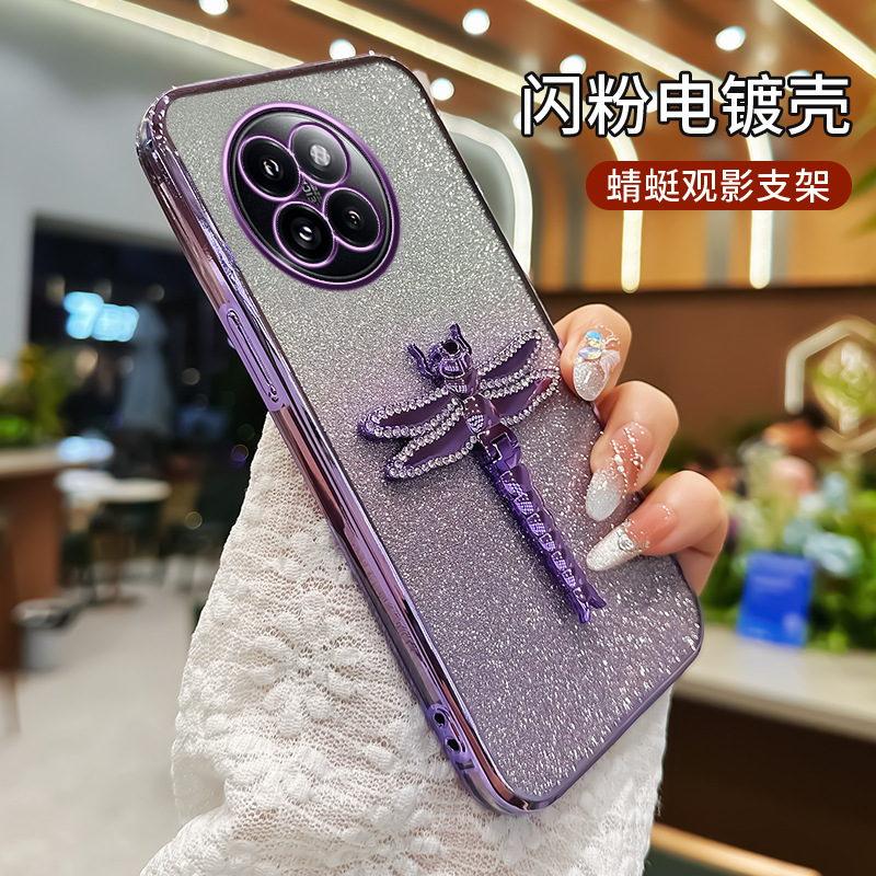 适用华为Pura70手机壳水钻蜻蜓支架电镀闪粉TPU防摔mate70PRO全包