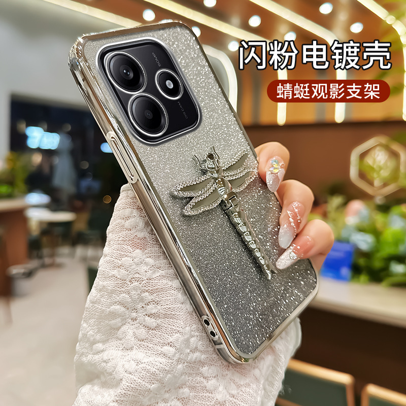 레드 라이스 노트 14 휴대 전화 케이스 레드 라이스 터보 3 라인 스톤 드래곤 플라이 브래킷 전기 도금 반짝이 간단한 새로운 여성