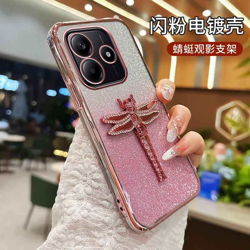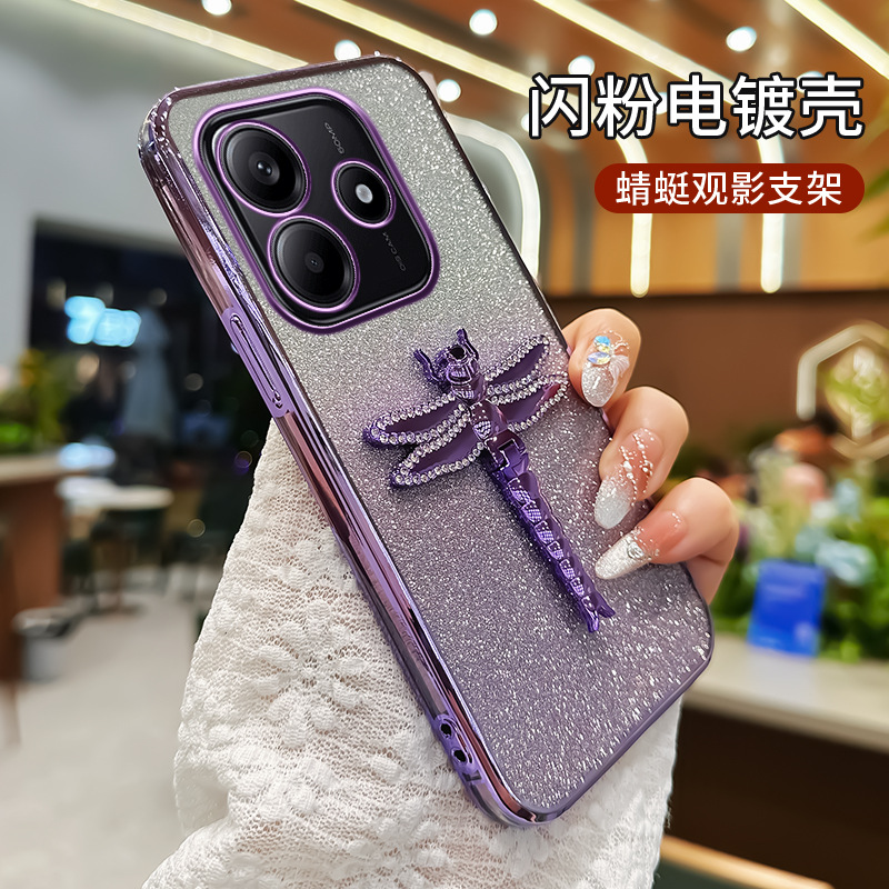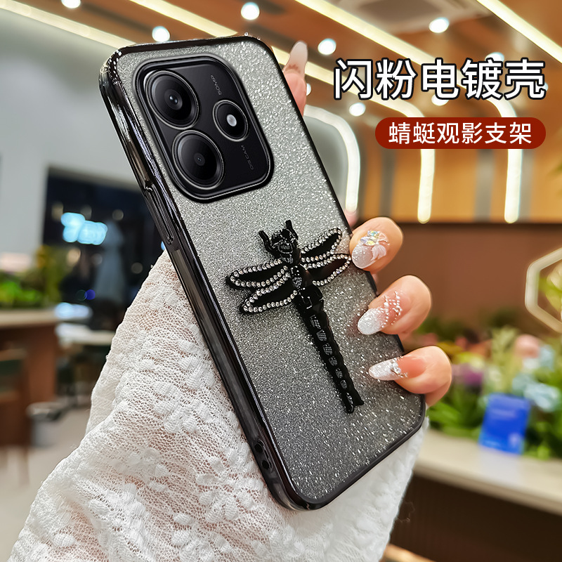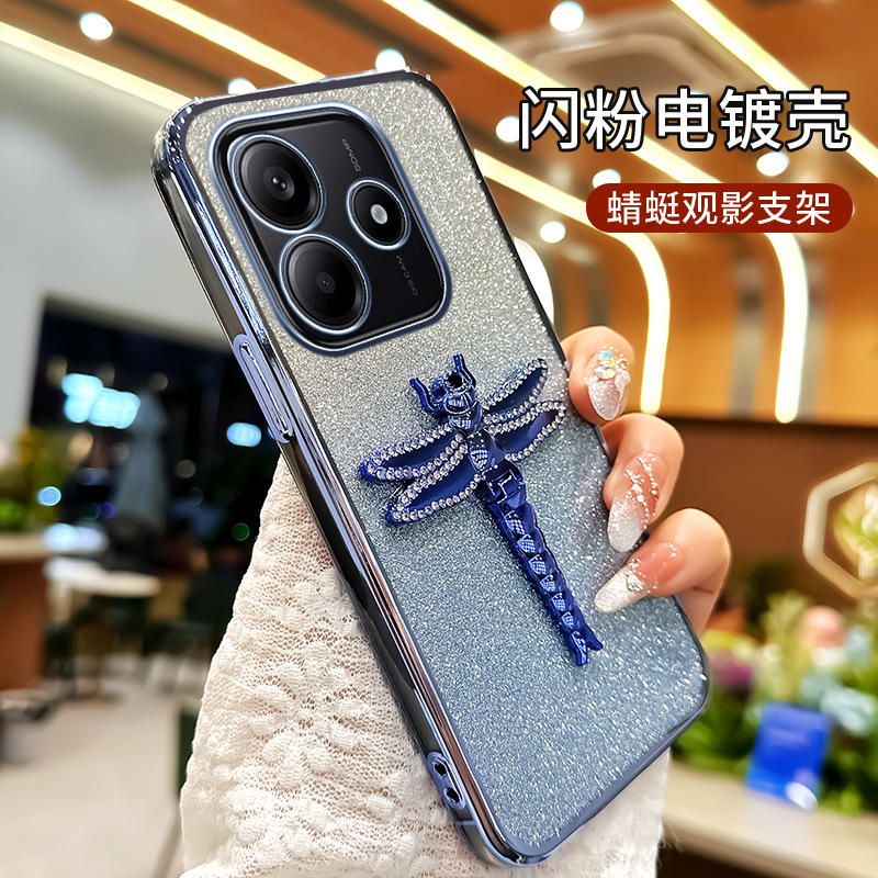 适用华为Pura70手机壳水钻蜻蜓支架电镀闪粉TPU防摔mate70PRO全包