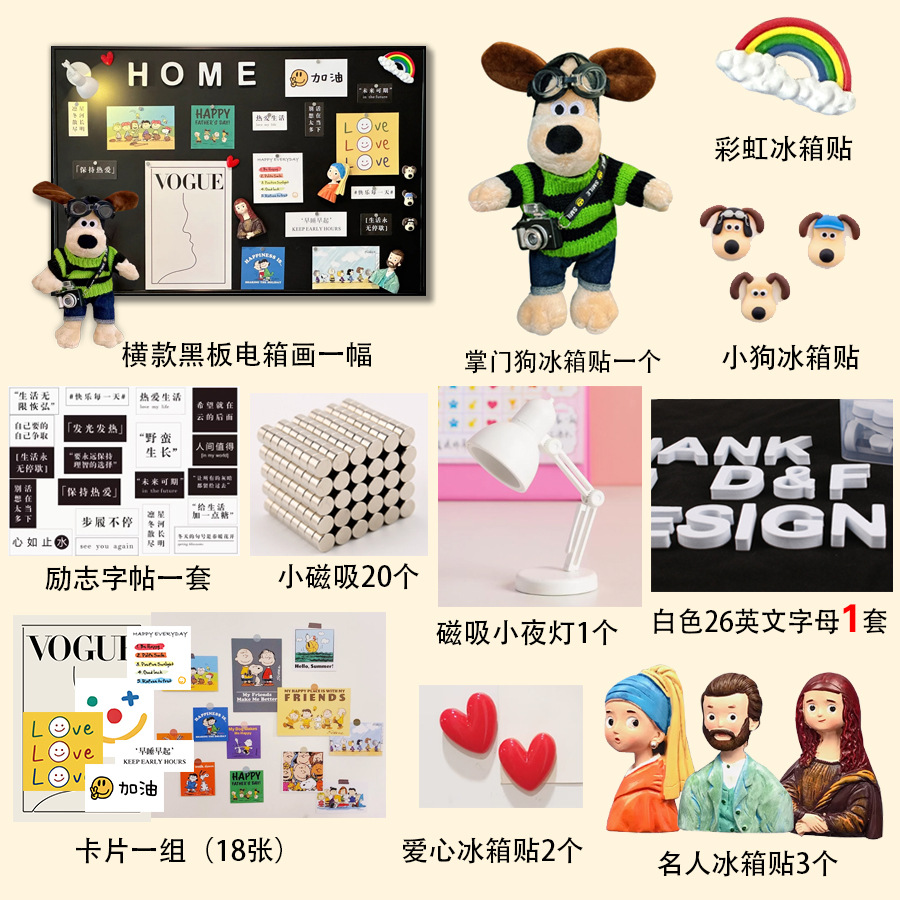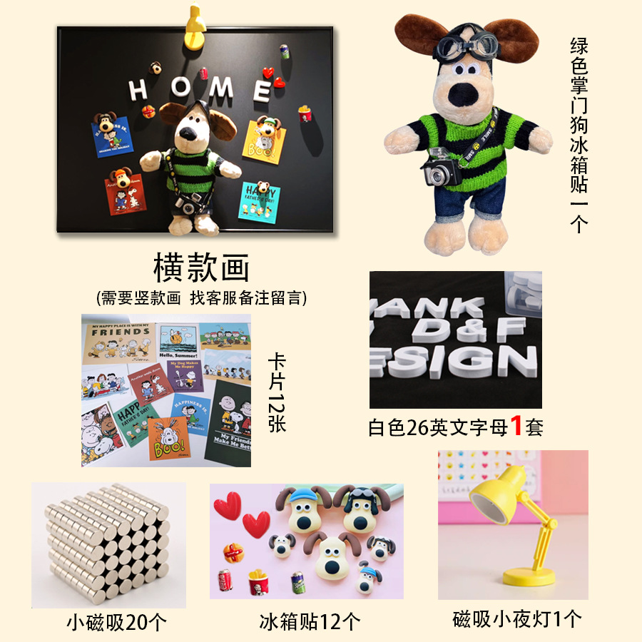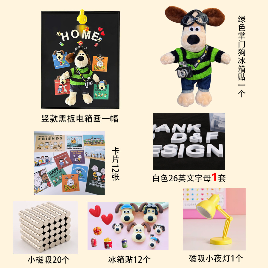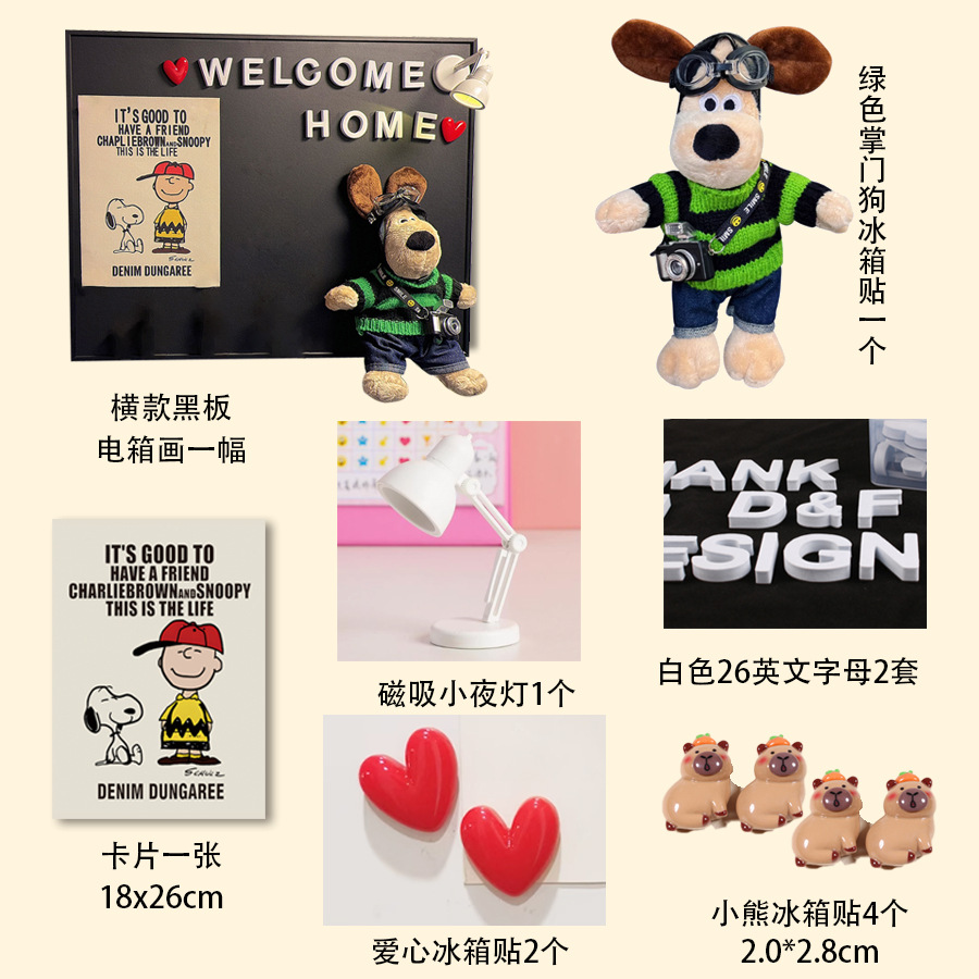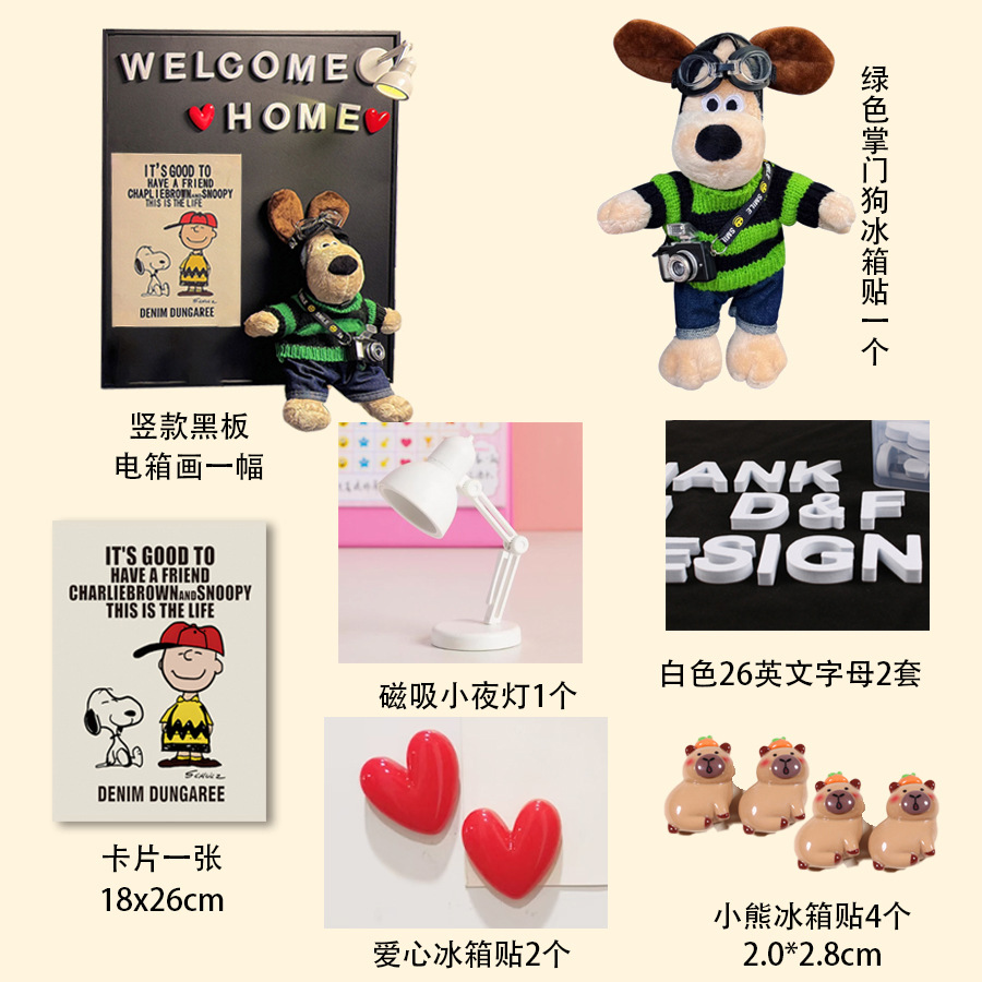 • 세로판화 + 리더견 + 스누피카드 + 스포트라이트 1개 + 문자세트 + 냉장고 자석 12개