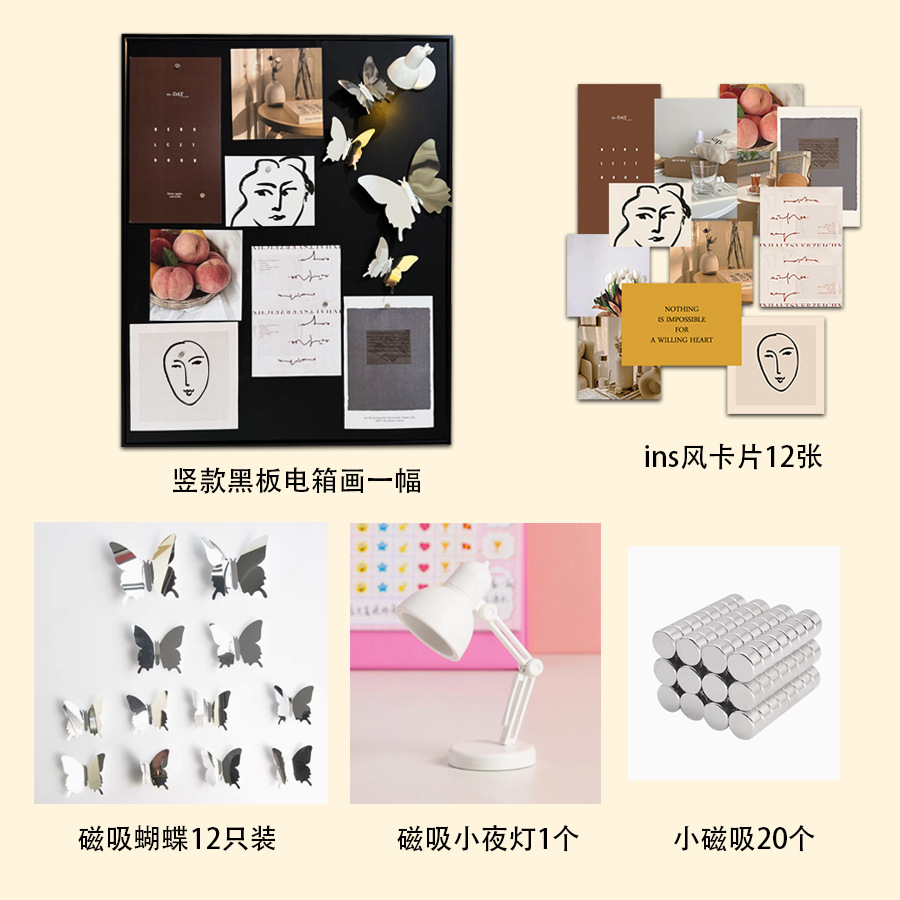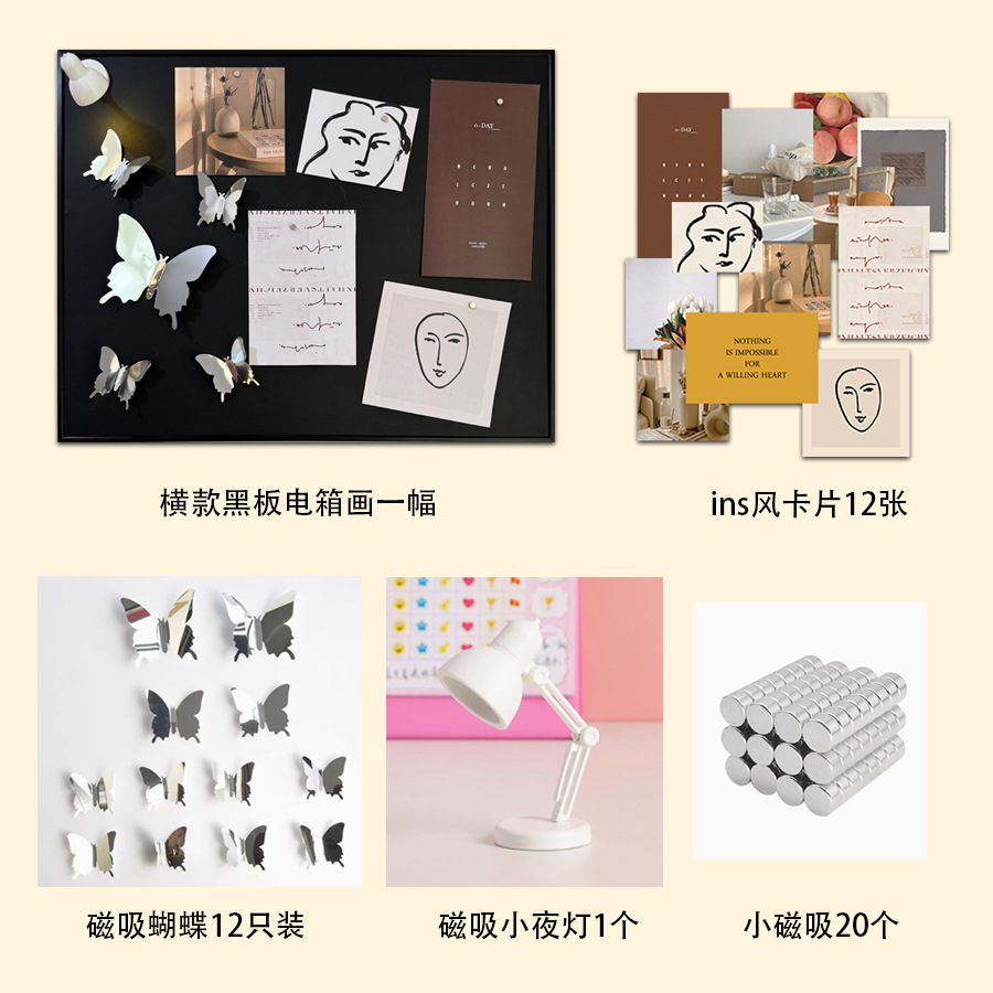 • 가로 인쇄 + ins 스타일 카드 + 자기 나비 + 백색광