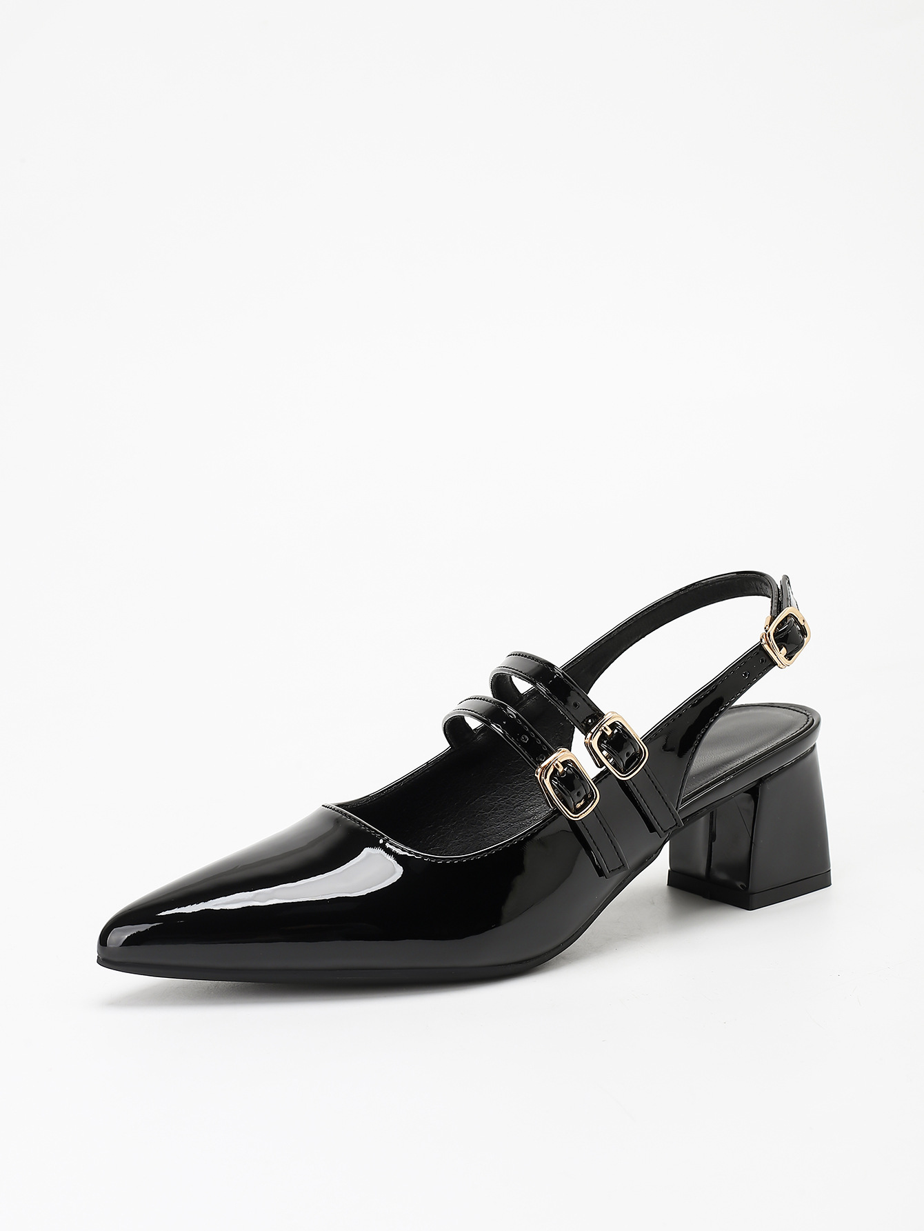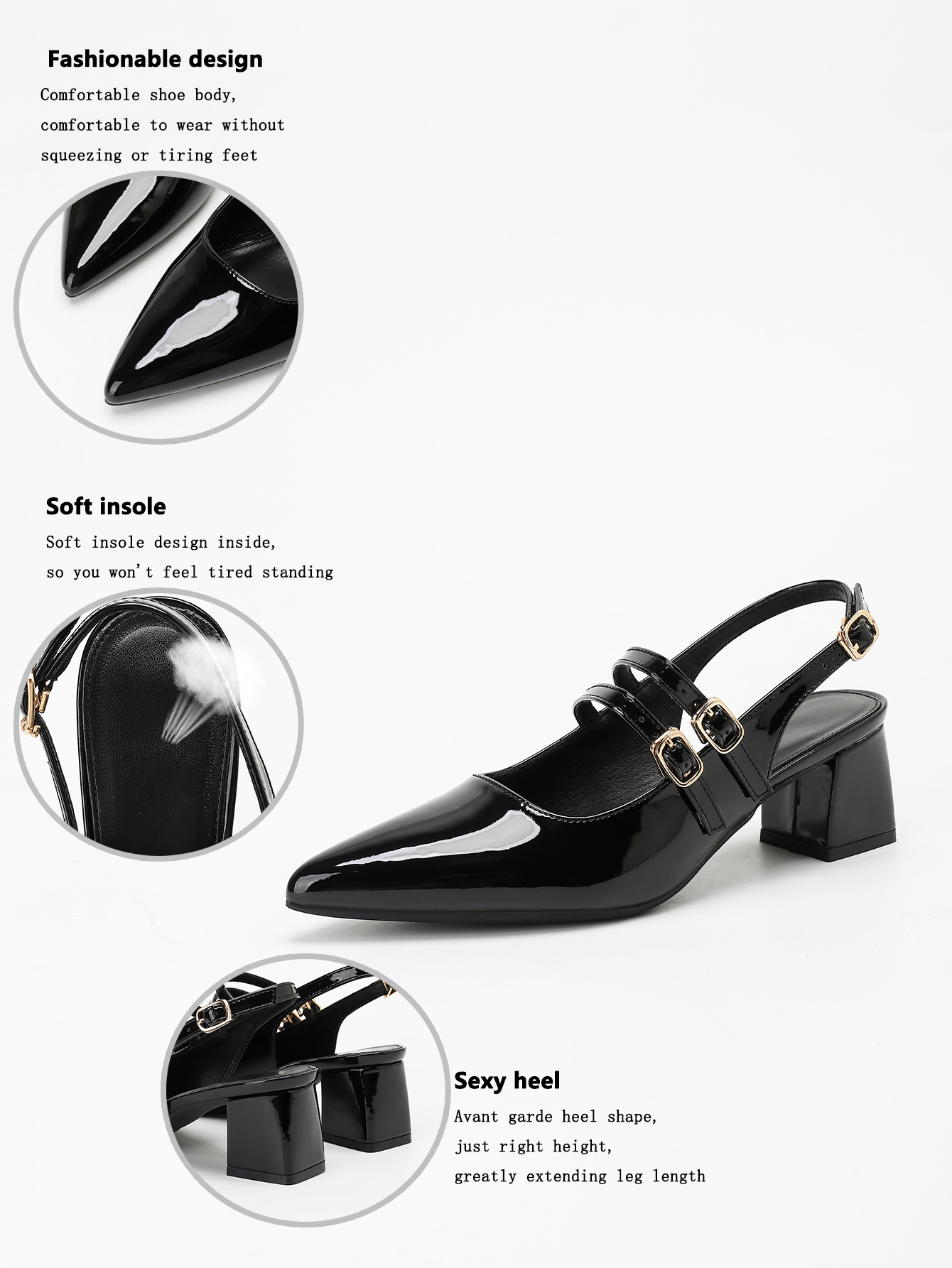 여성을위한 크로스 보더 유럽 사이즈 백 샌들 여름 2025 새로운 프렌치 스타일 포인티드 토 싱글 슈즈 메리 제인 두꺼운 힐 하이힐