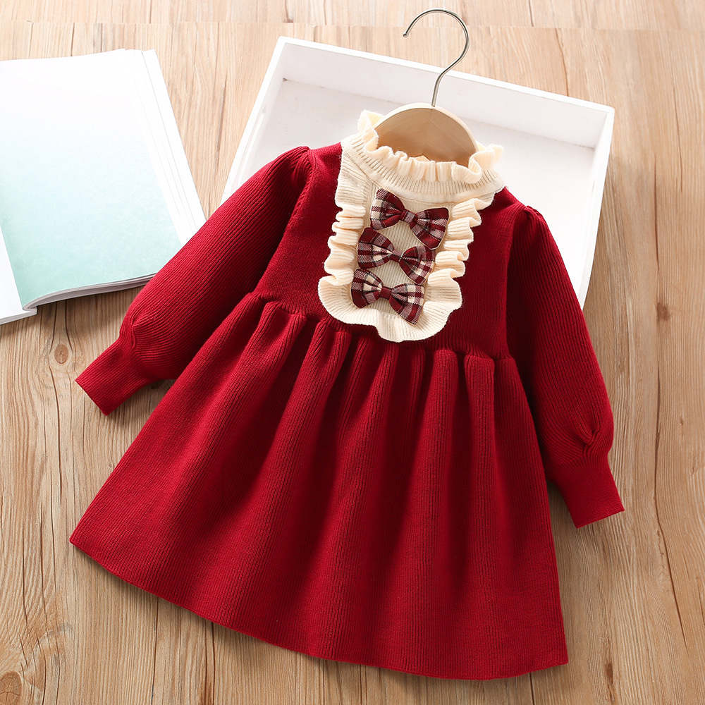 소녀 스웨터 원피스 공주 원피스 가을과 겨울 서양식 새로운 어린이 아기 소녀 붉은 활 중국 새해 복스토어 가기