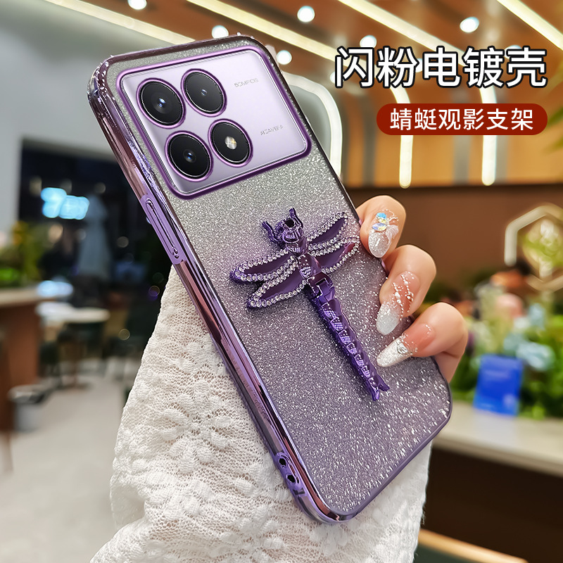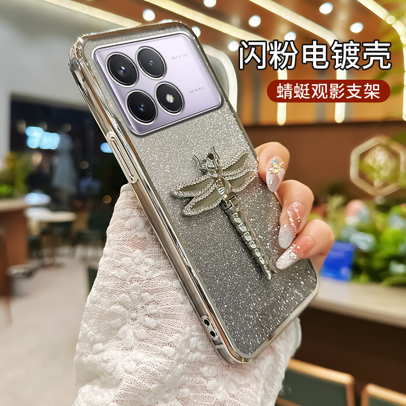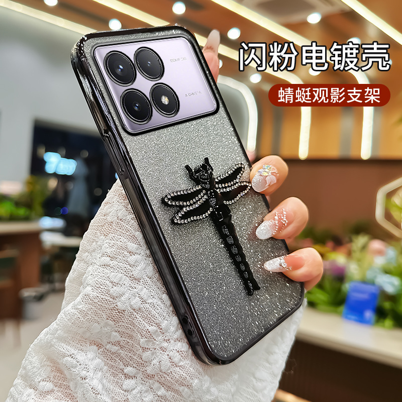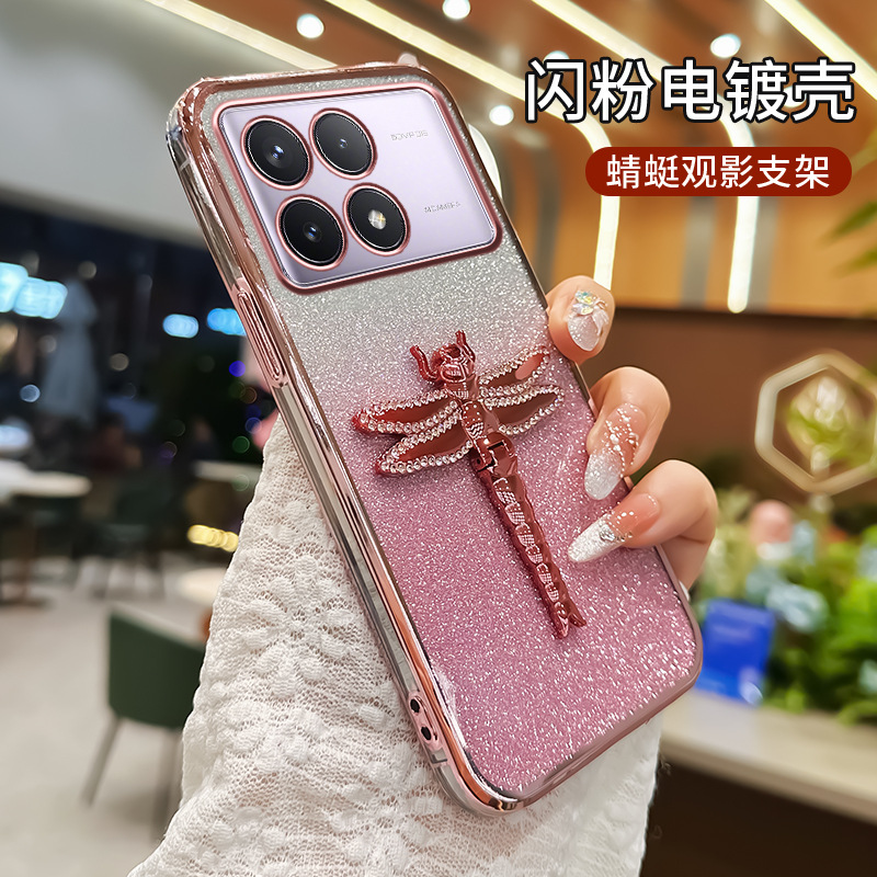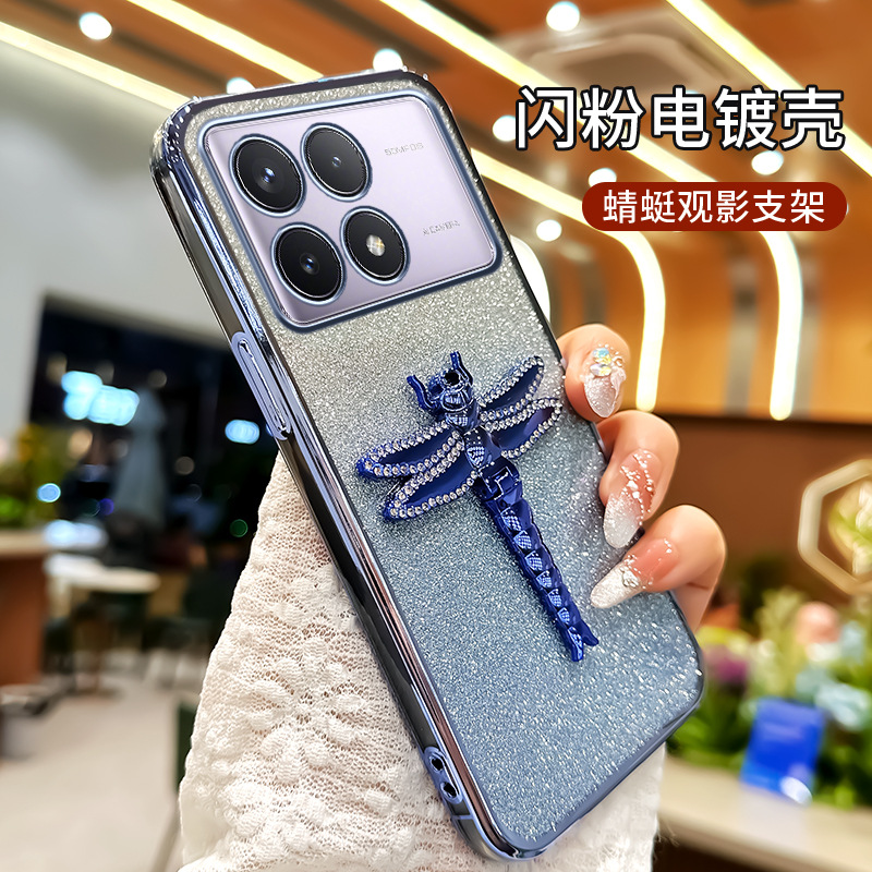 레드 라이스 K80 휴대 전화 케이스 레드 라이스 K70 라인 스톤 잠자리 스탠드 K60Pro 전기 도금 반짝이 간단한 새 여성