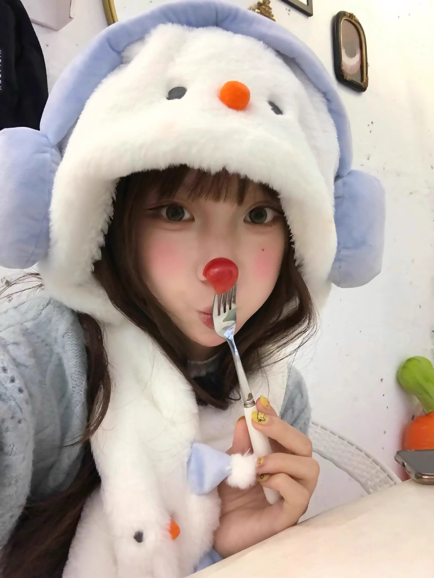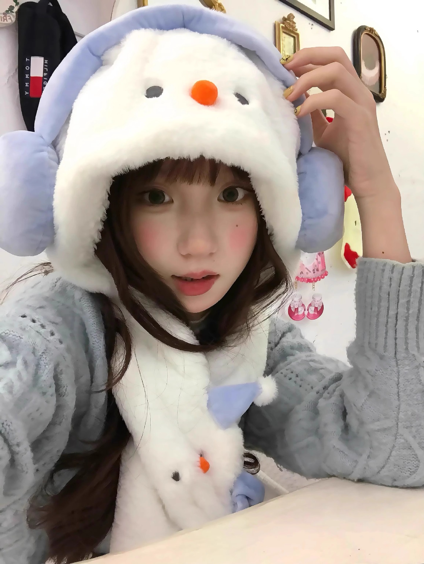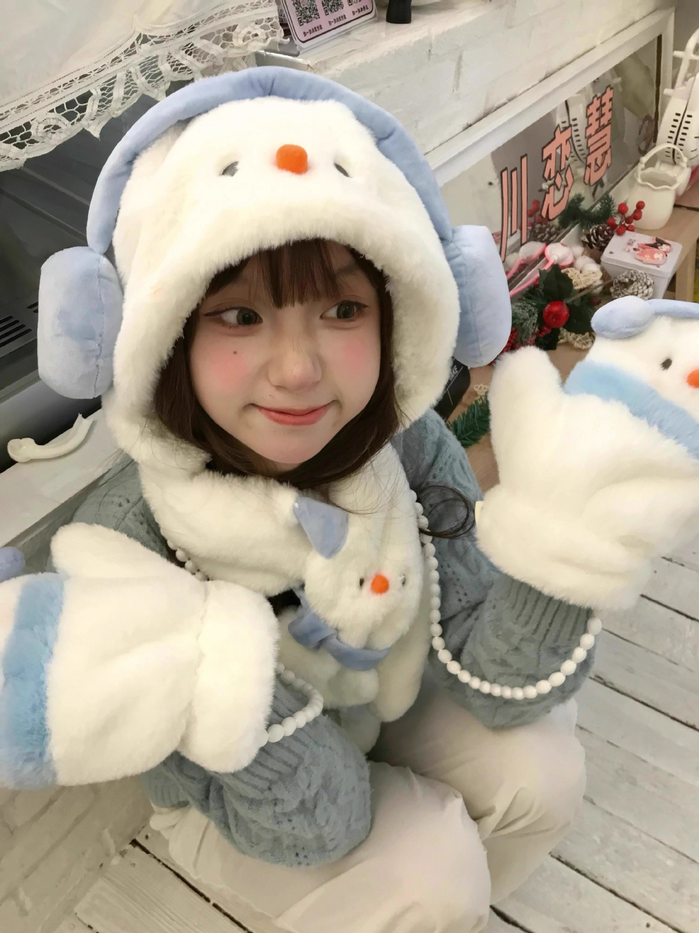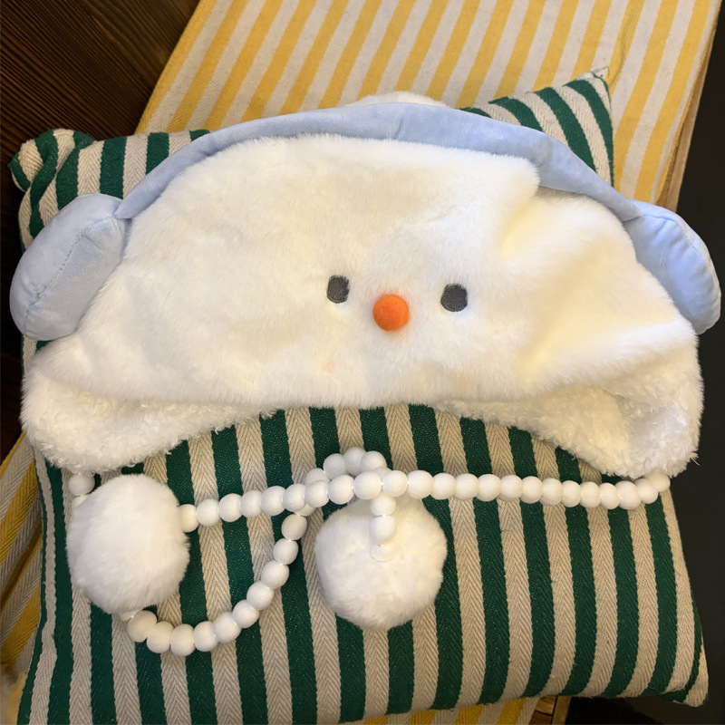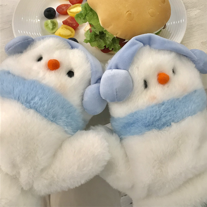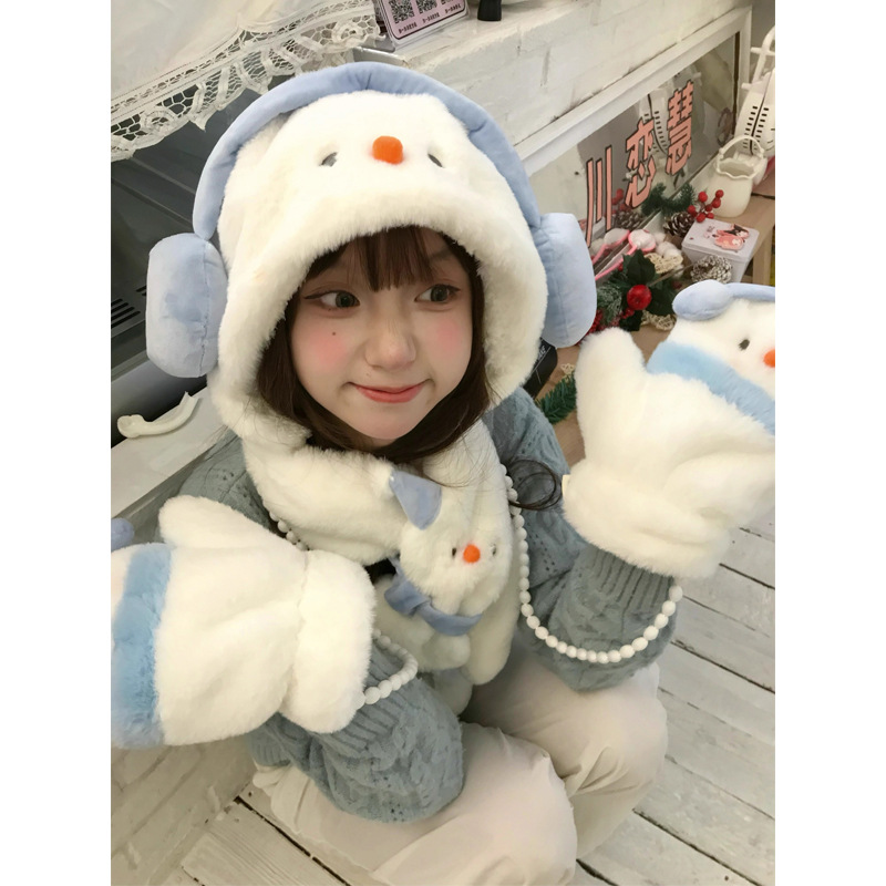 겨울 새로운 따뜻한 두꺼운 눈사람 모자 귀여운 도파민 눈사람 스카프 장갑 모자 모피 3 피스 세트