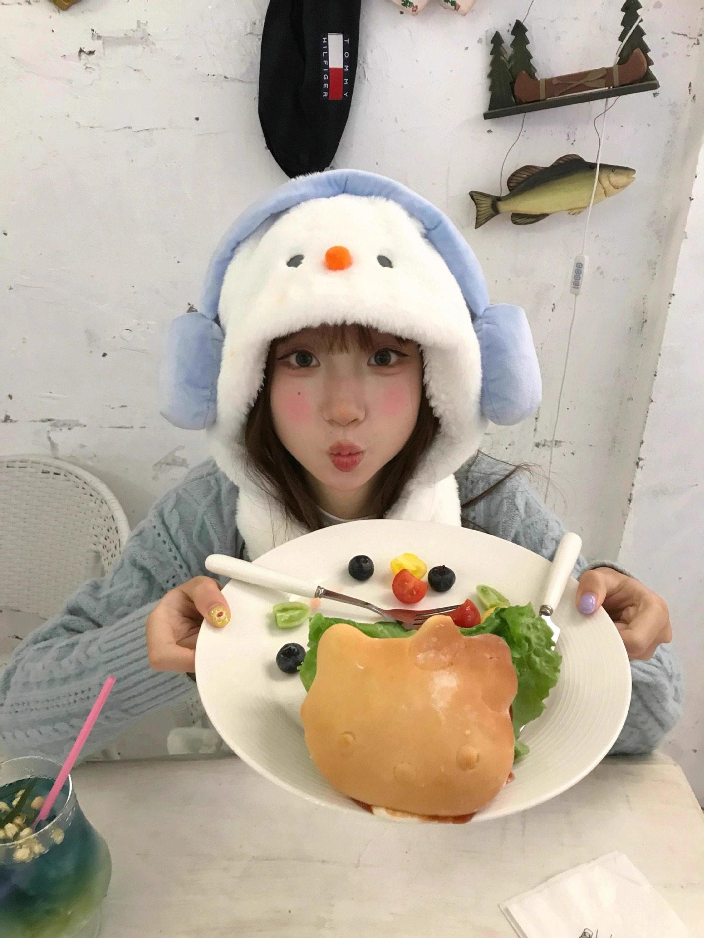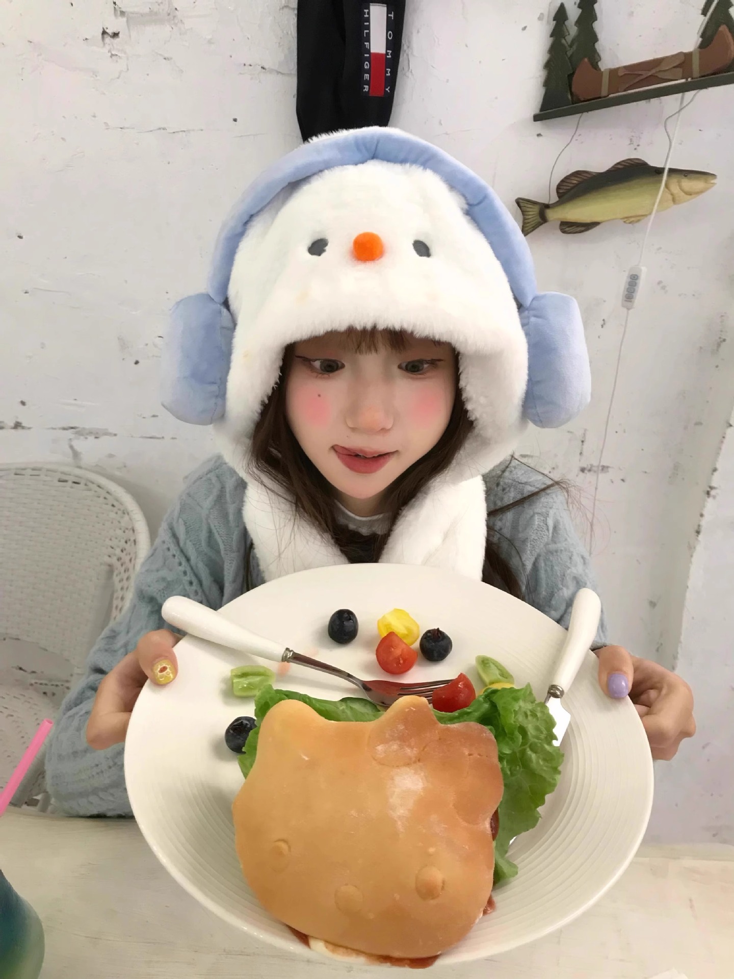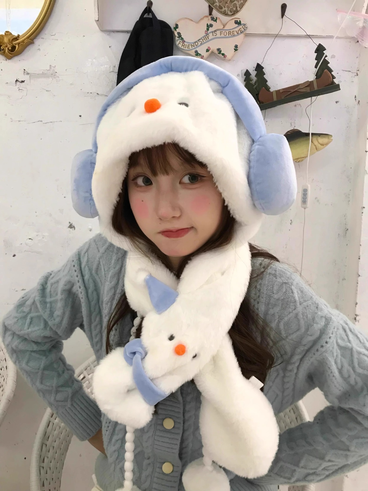 겨울 새로운 따뜻한 두꺼운 눈사람 모자 귀여운 도파민 눈사람 스카프 장갑 모자 모피 3 피스 세트스토어 가기