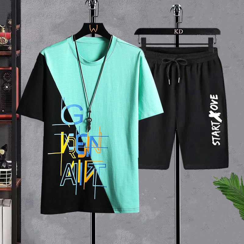 아이스 실크 여름 남자 한국 스포츠 레저 편안한 농구 비치 스포츠 세트 티셔츠 짧은 소매 투피스 대외 무역스토어 가기