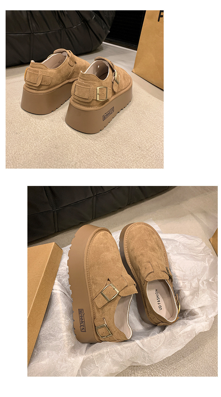 가을 2024 새로운 빈티지 벨트 버클 슬립 온 플랫폼 버켄 네스 신발 여성 올 매치 캐주얼 싱글 레이어 신발 한 줄 버클스토어 가기