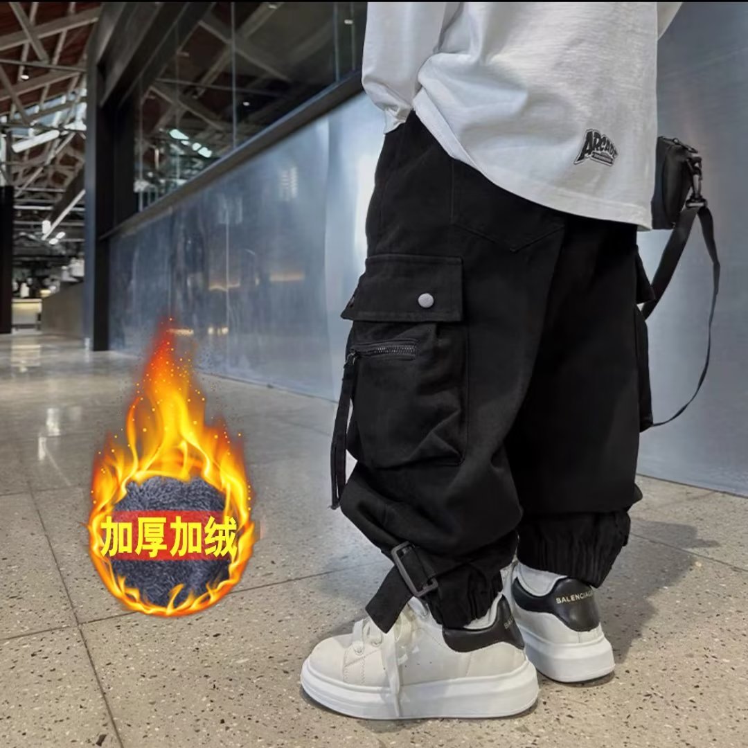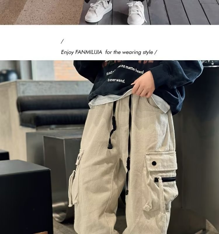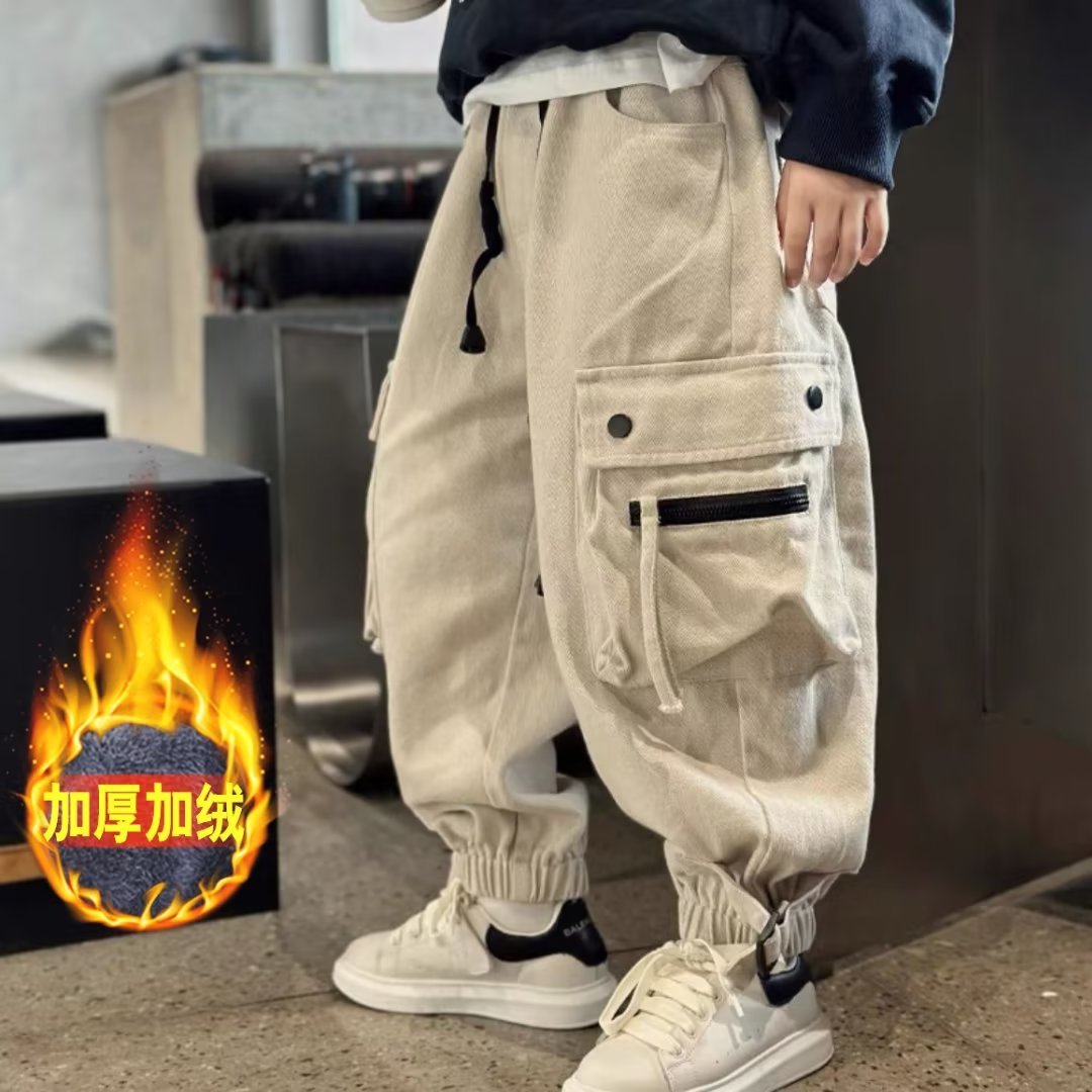 소년 가을 바지 가을과 겨울 기모 바지 2024 새로운 큰 뚱뚱한 소년 원피스 벨벳 캐주얼 바지스토어 가기