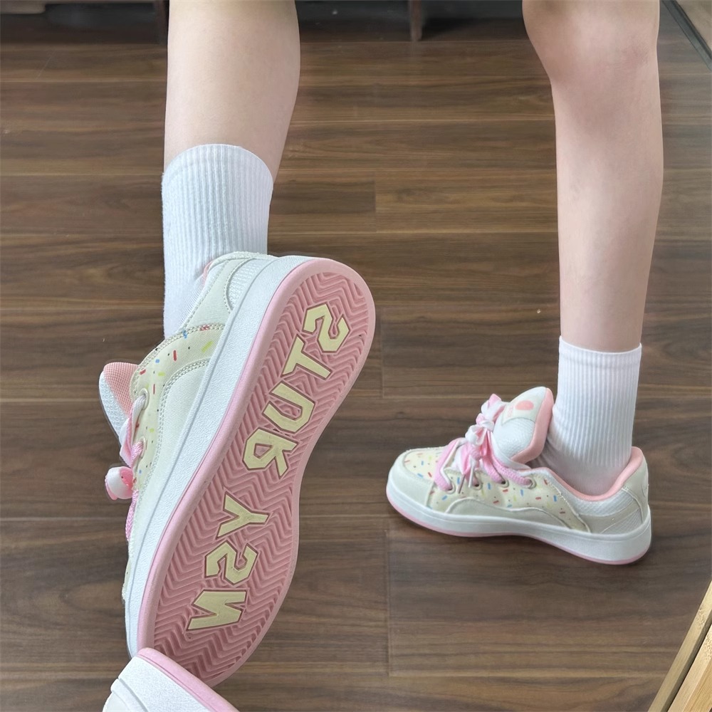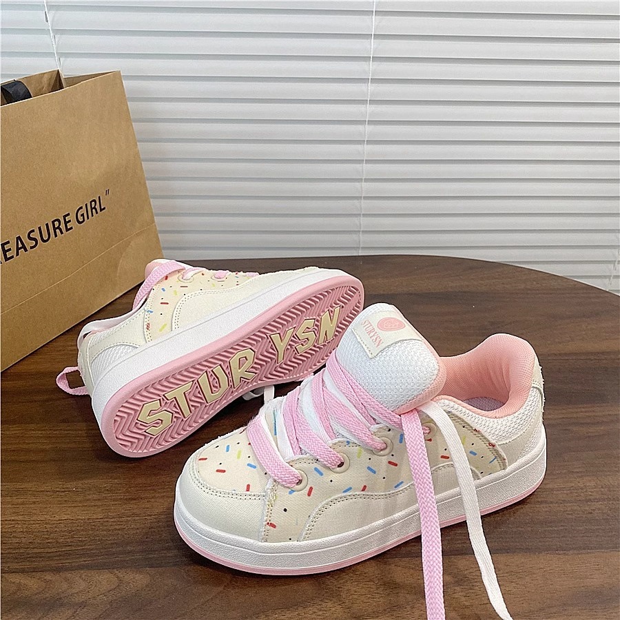 2024 가을과 겨울을위한 흰색 신발 2024 새로운 핑크 라운드 헤드 인 컬러 매칭 빵 신발 다목적 캐주얼 패션 신발