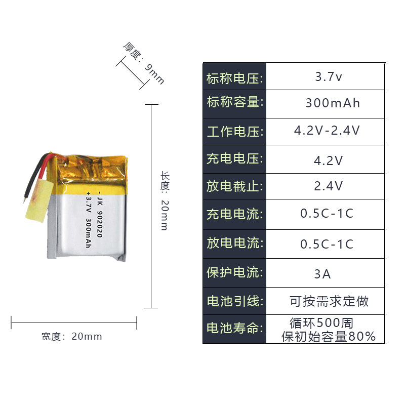 • 902020-300mAh 배터리 + 보호 보드 콘센트