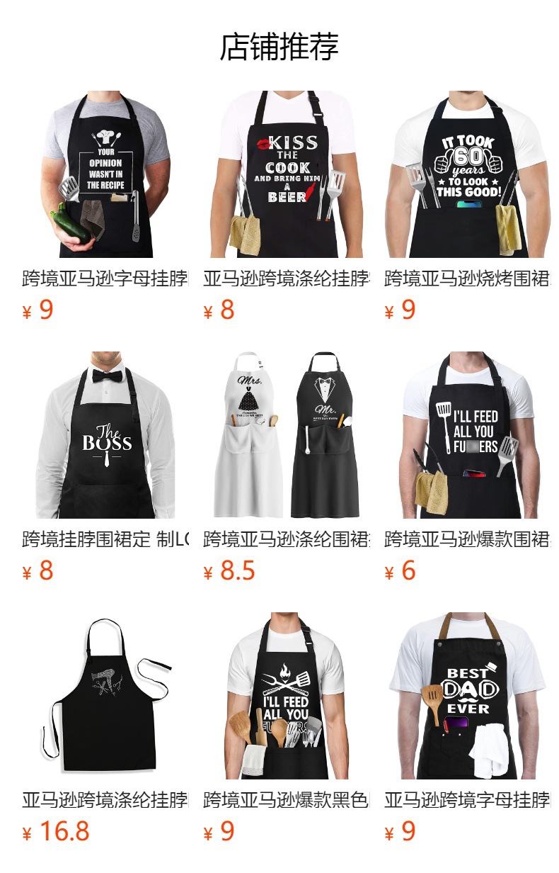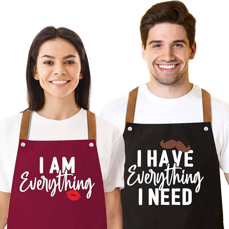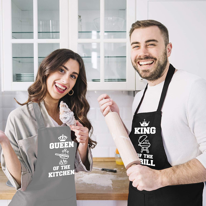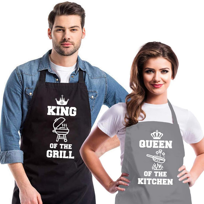 아마존 핫 세일 오염 방지 커플 앞치마 세트 카페 밀크 티 샵 작업 옷 로고가있는 레스토랑 앞치마스토어 가기