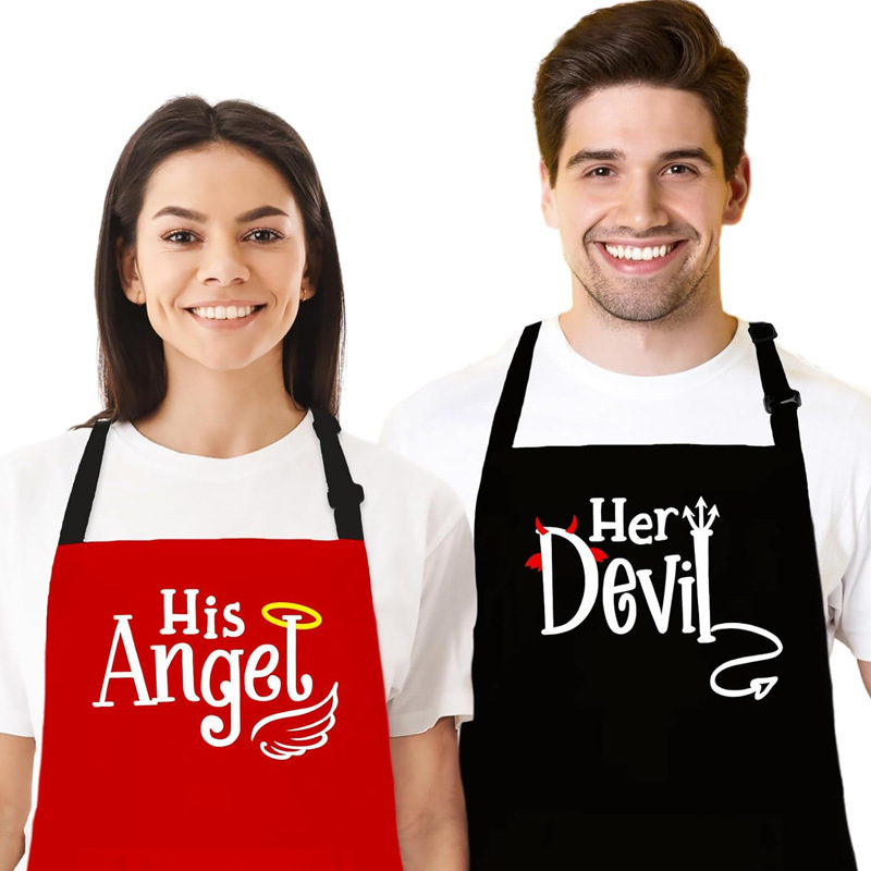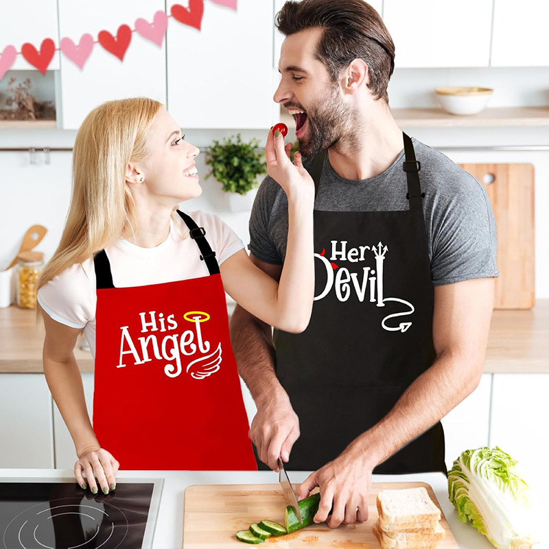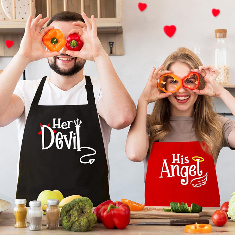 아마존 핫 세일 오염 방지 커플 앞치마 세트 카페 밀크 티 샵 작업 옷 로고가있는 레스토랑 앞치마