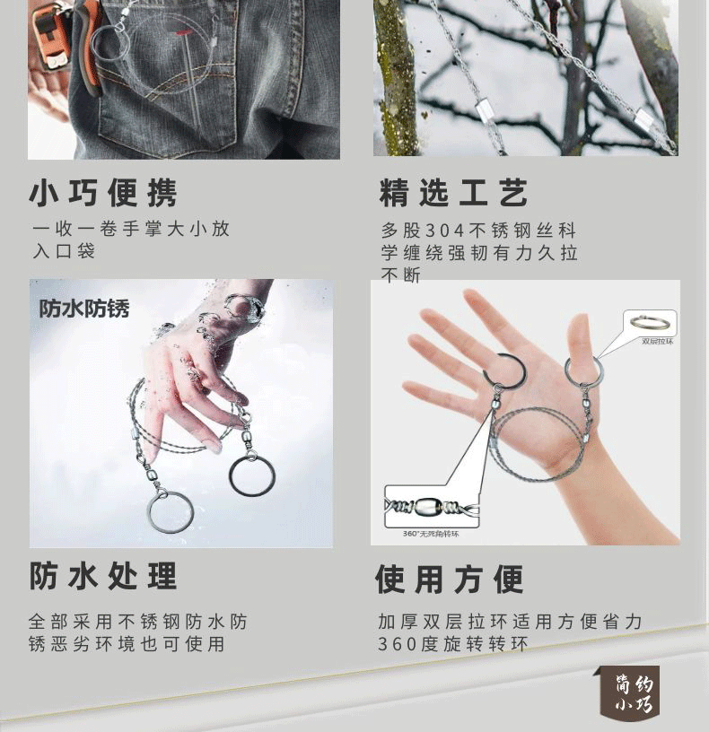공장 직판 와이어 톱 강철 와이어 톱 야외 생존 장비 손톱 톱 다기능 체인 톱 수초 톱 휴대용스토어 가기