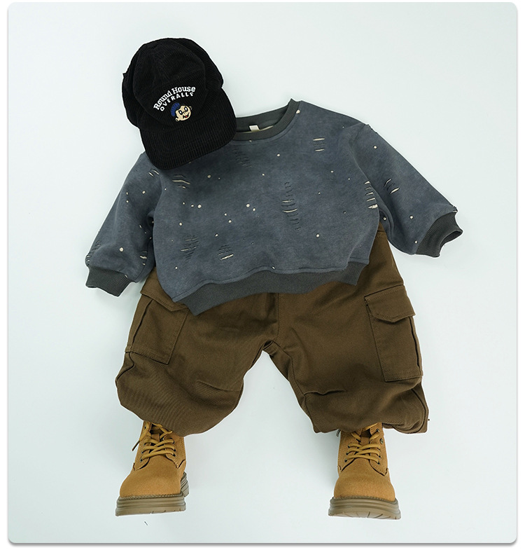 가을과 겨울 어린이 원피스 벨벳 스웨터 편안한 따뜻한 아기 소년과 소녀 두꺼운 풀오버 서양식 다목적 클래식 아동복스토어 가기