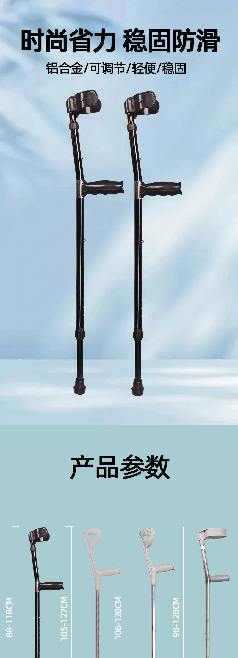 노인을위한 팔꿈치 관절 휴대용 팔꿈치 목발 미끄럼 방지 목발 경량 가정용 교체 가능한 노인을위한 걷기 팔