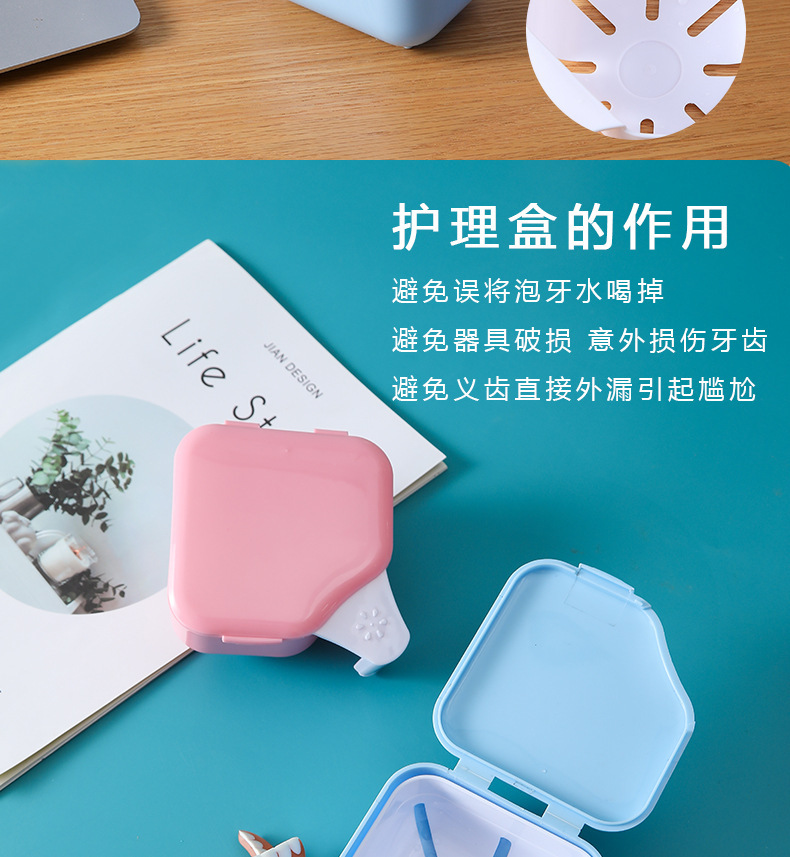 노인 보이지 않는 브레이스 청소 및 청소 상자 높은 컬러 값 휴대용 벨트를 위한 틀니 저장 상자 견디는 상자스토어 가기