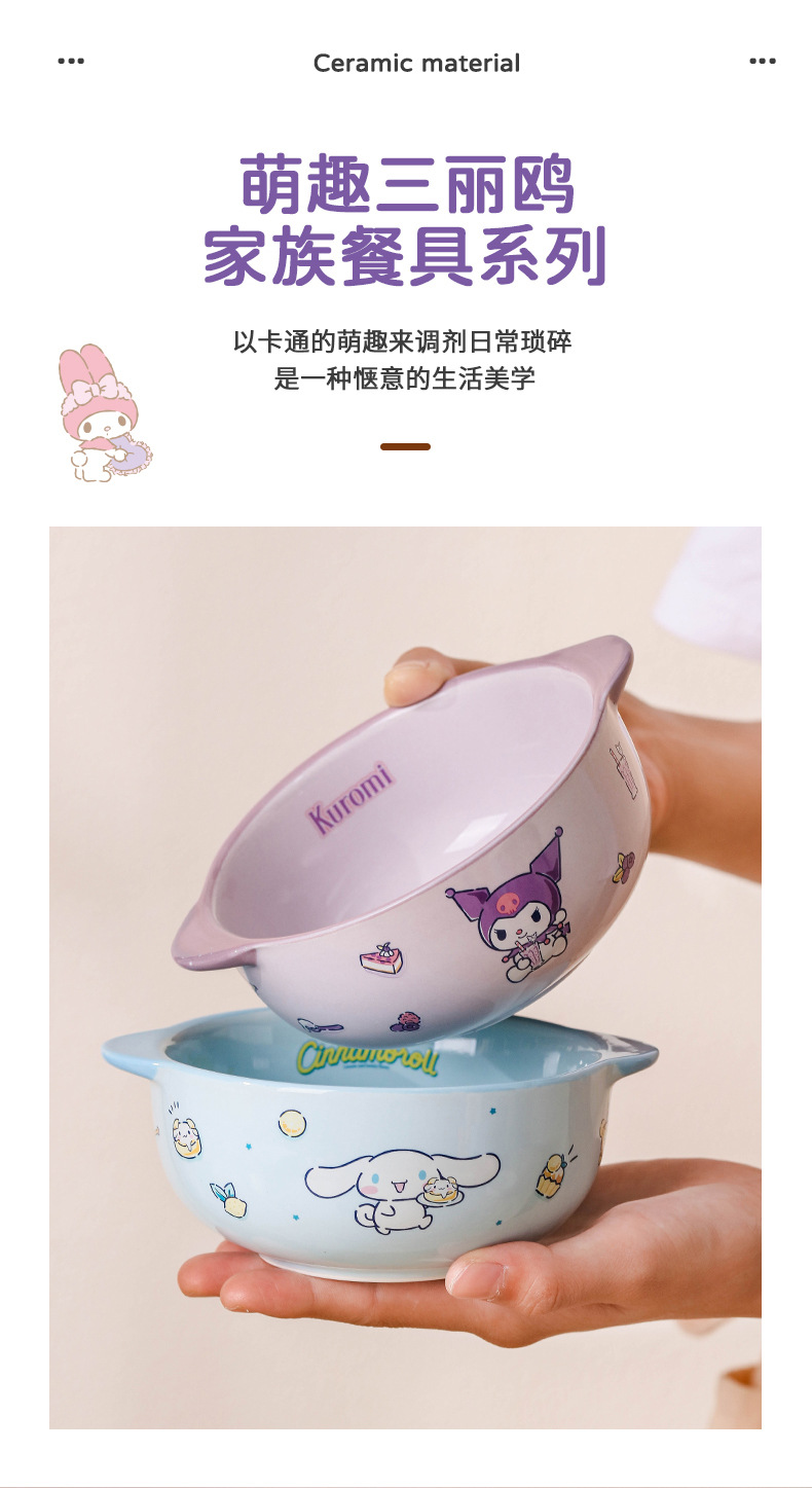 산리오 가족 시리즈 아침 식사 더블 귀 그릇 식기 가정용 높은 색상 가치 세라믹 어린이 식사 그릇 밥 그릇 국수 그릇