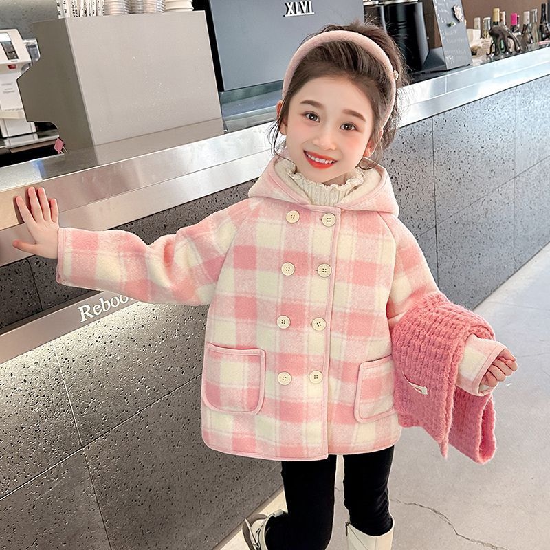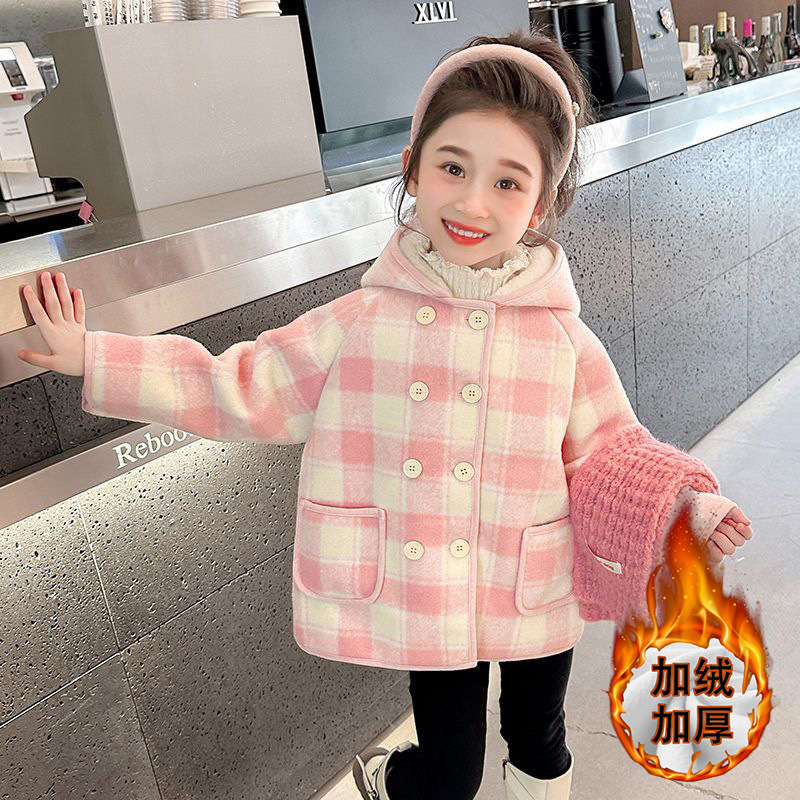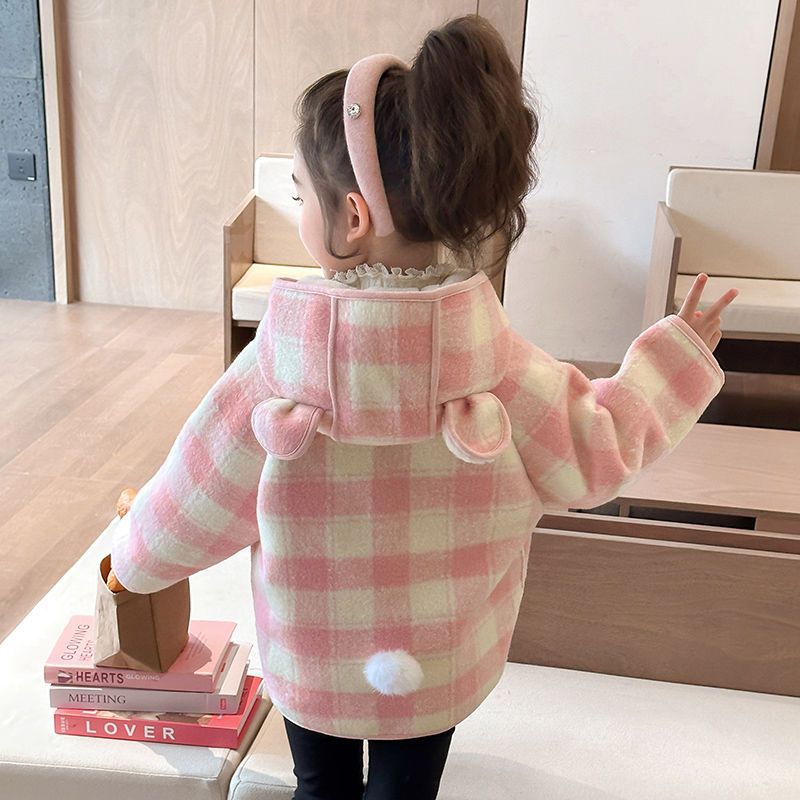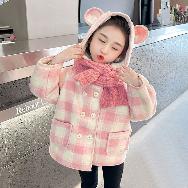 여성 격자 무늬 만화 후드 코트 큰 어린이 가을과 겨울 새로운 색상 매칭 올매치 달콤한 올매치 귀여운 재킷 트렌디스토어 가기