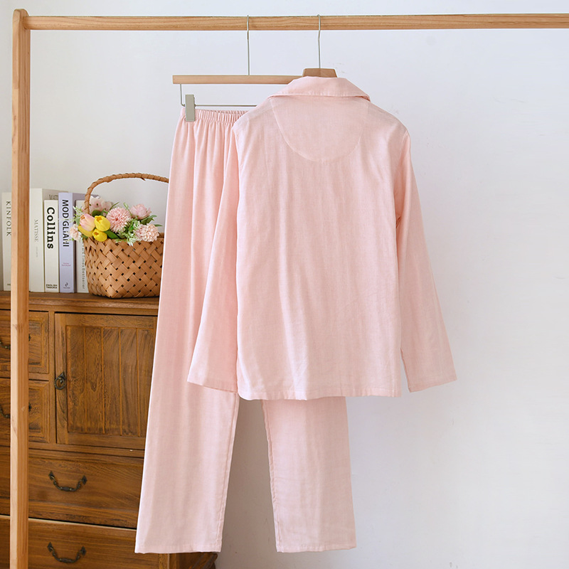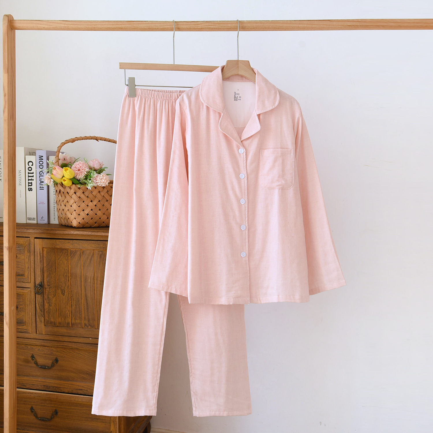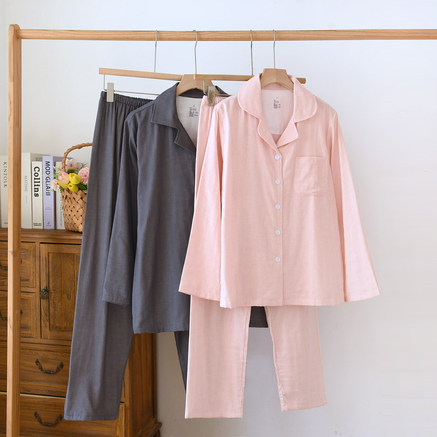 봄 여름 가을 새 커플 잠옷 긴 소매 바지 더블 거즈 남성과 여성의 원사 염색 면사 홈 의류 소스 공장스토어 가기