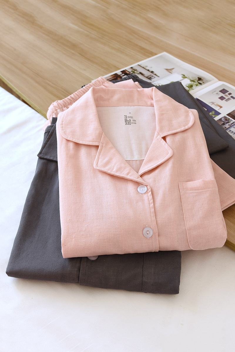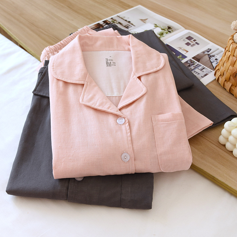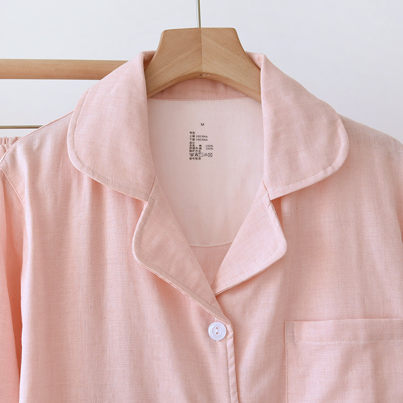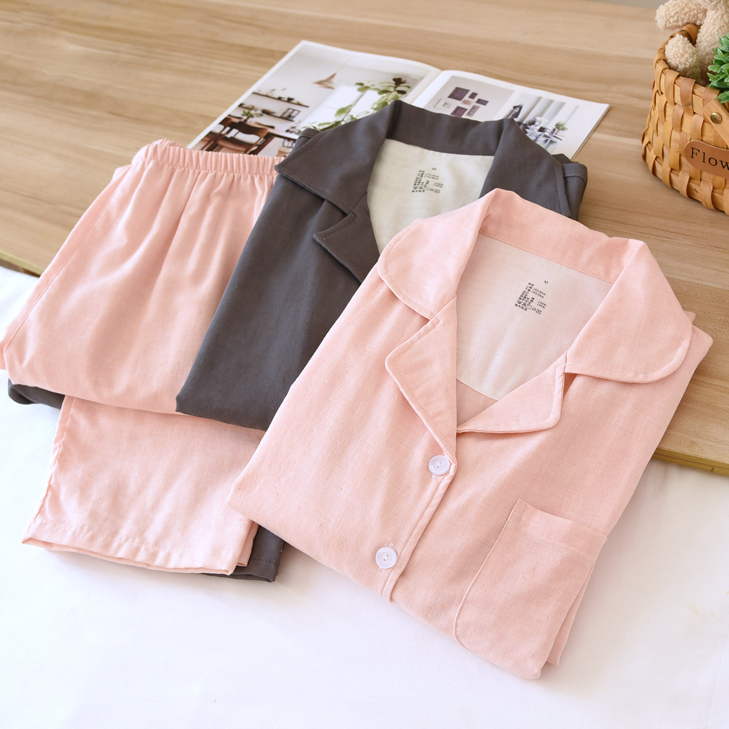 봄 여름 가을 새 커플 잠옷 긴 소매 바지 더블 거즈 남성과 여성의 원사 염색 면사 홈 의류 소스 공장스토어 가기