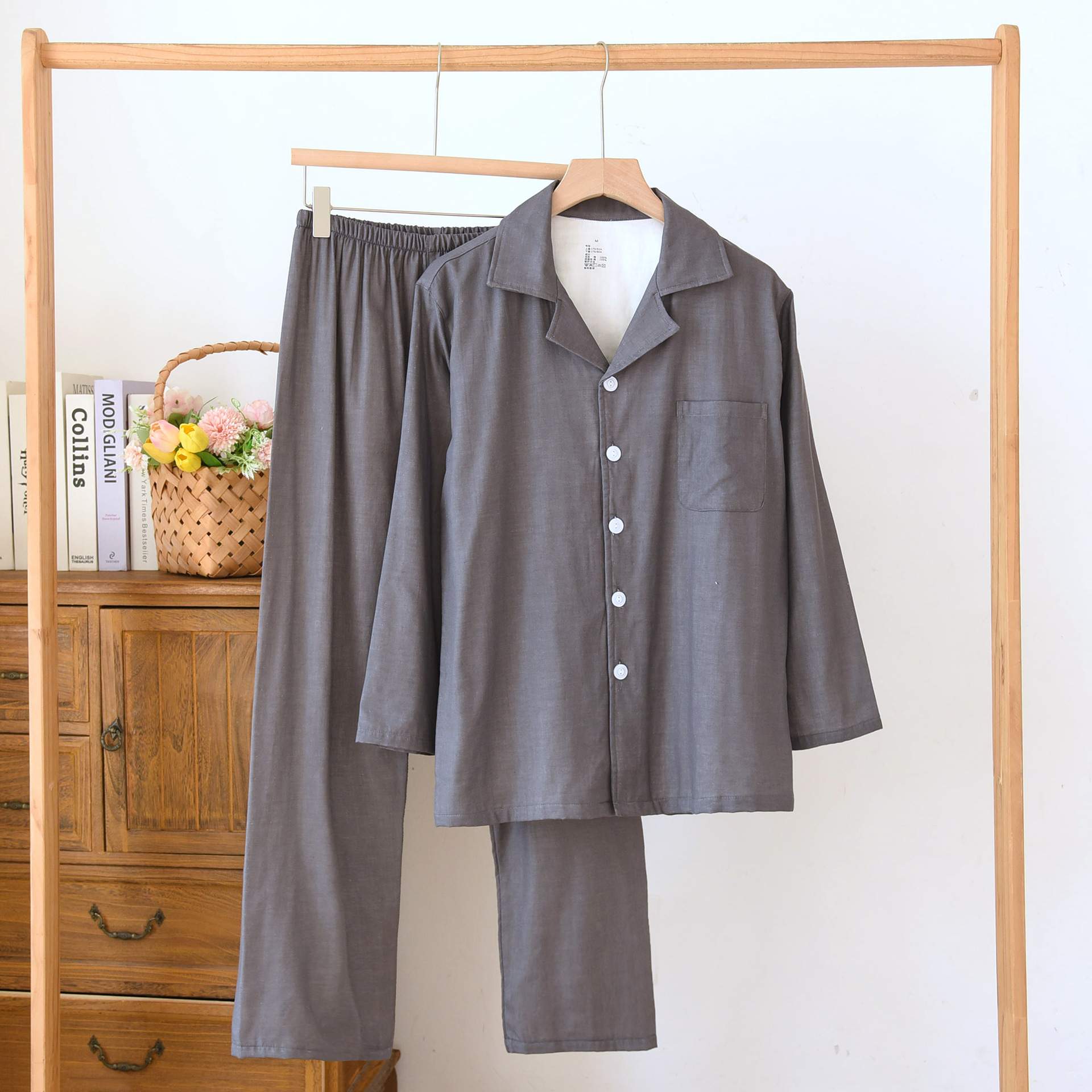 봄 여름 가을 새 커플 잠옷 긴 소매 바지 더블 거즈 남성과 여성의 원사 염색 면사 홈 의류 소스 공장