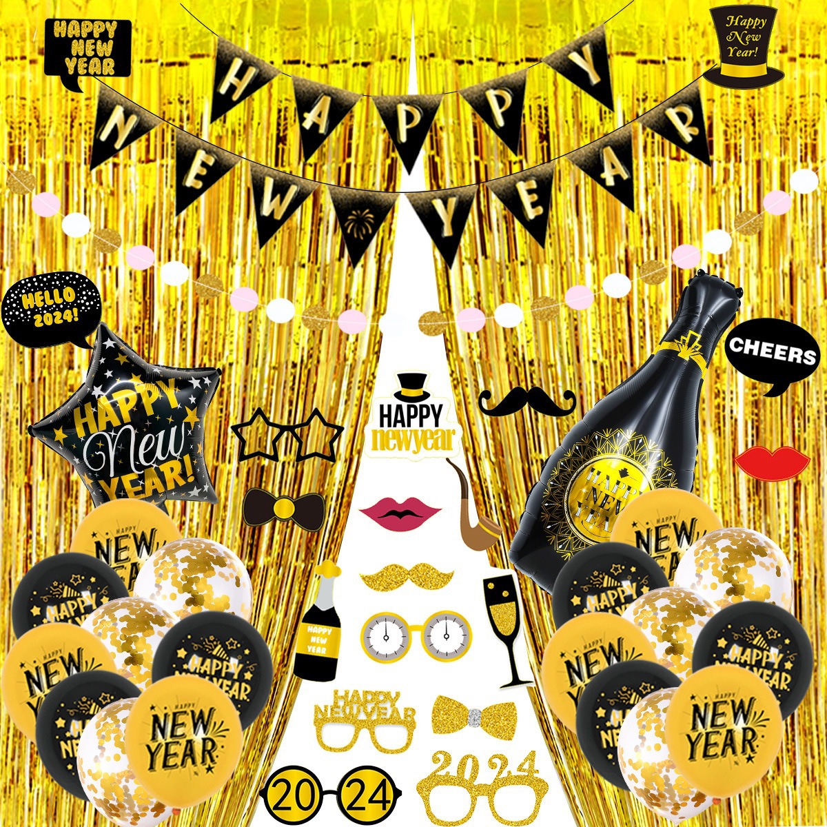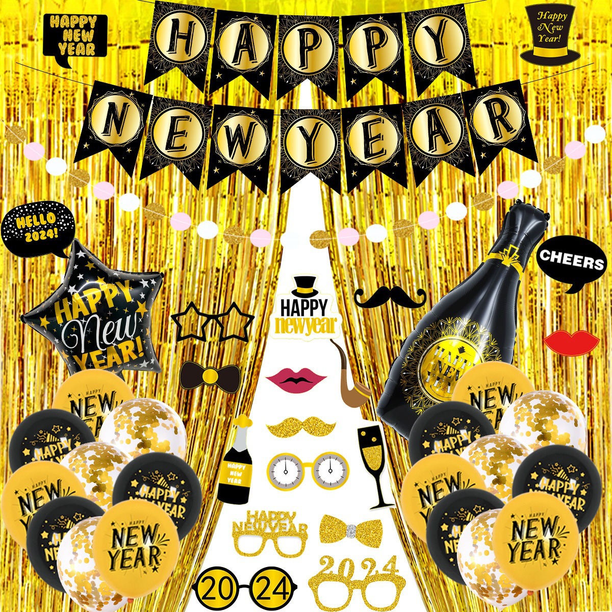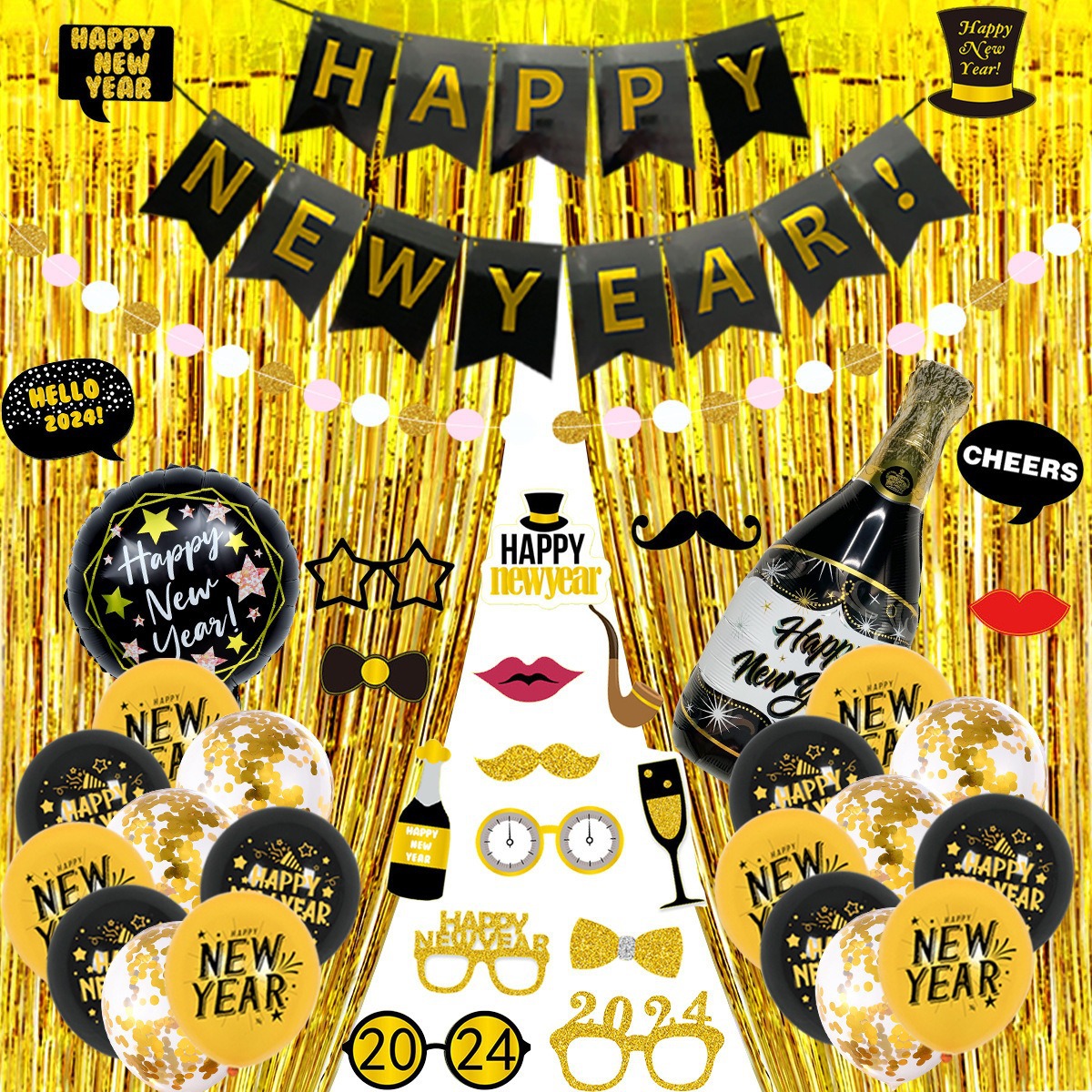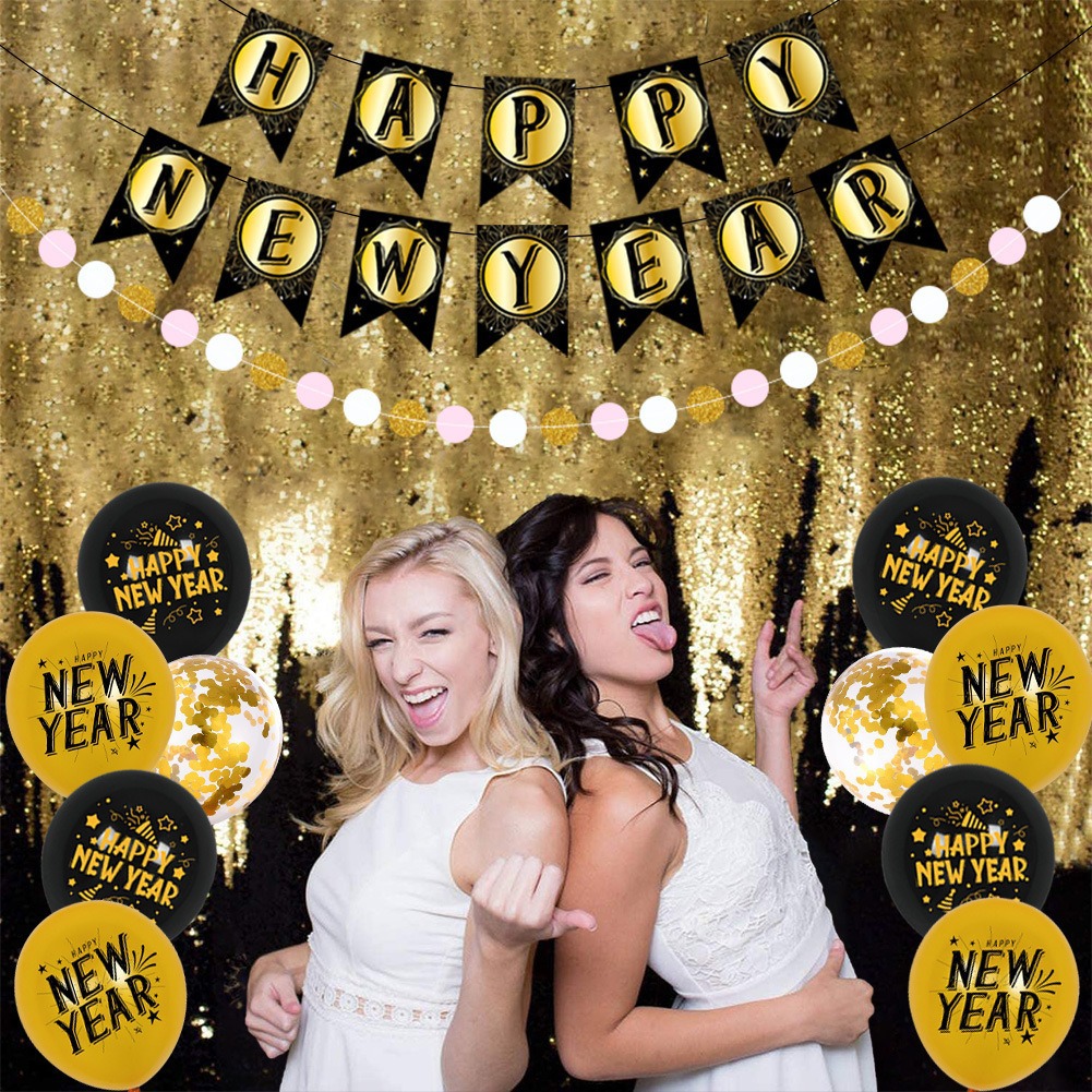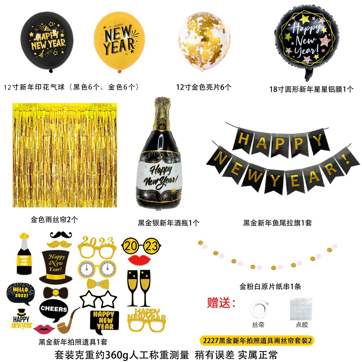 해피 뉴 이어 블랙 골드 테마 파티 세트 피쉬 플래그 술 알루미늄 필름 장식 새해 풍선 장소 레이아웃스토어 가기