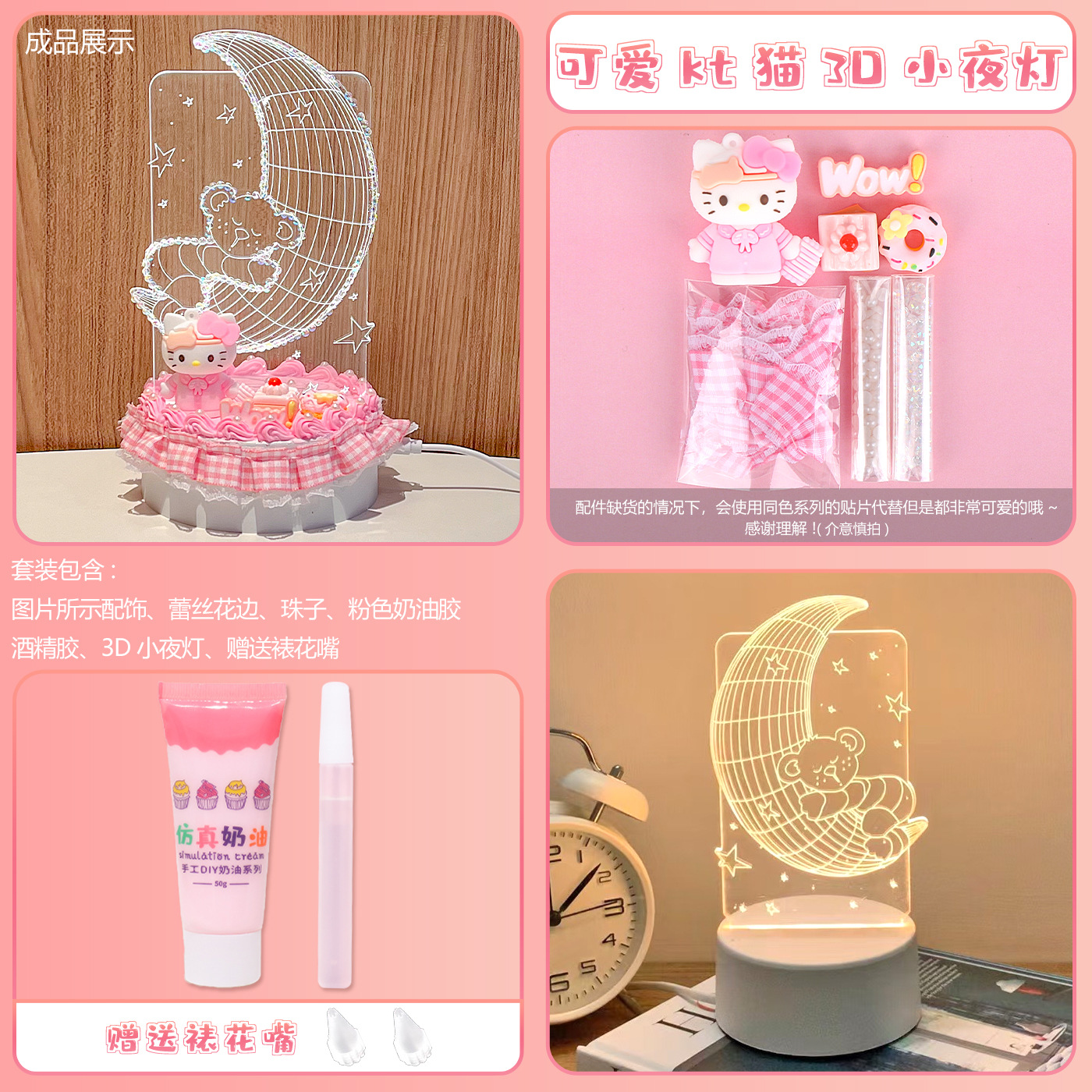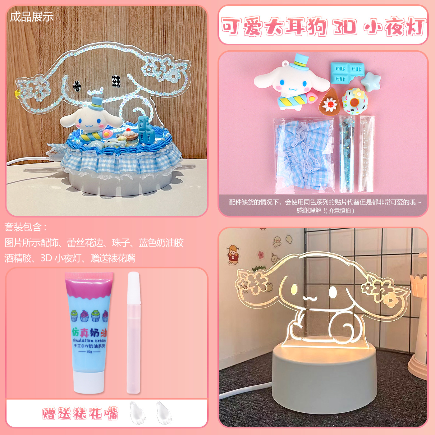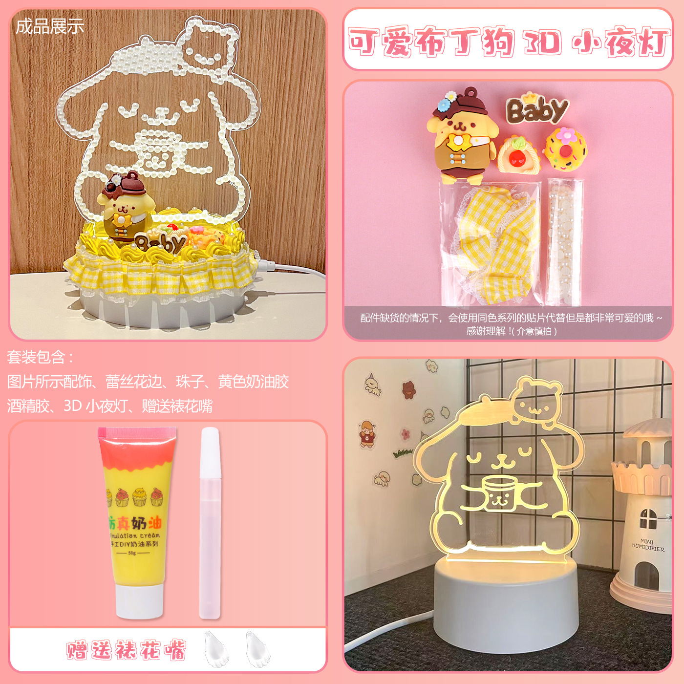 • [카드 헤드백 포장] 크고 작은 곰 3D 야간 조명 플러그인 모델 + 푸딩 개 재료 패키지