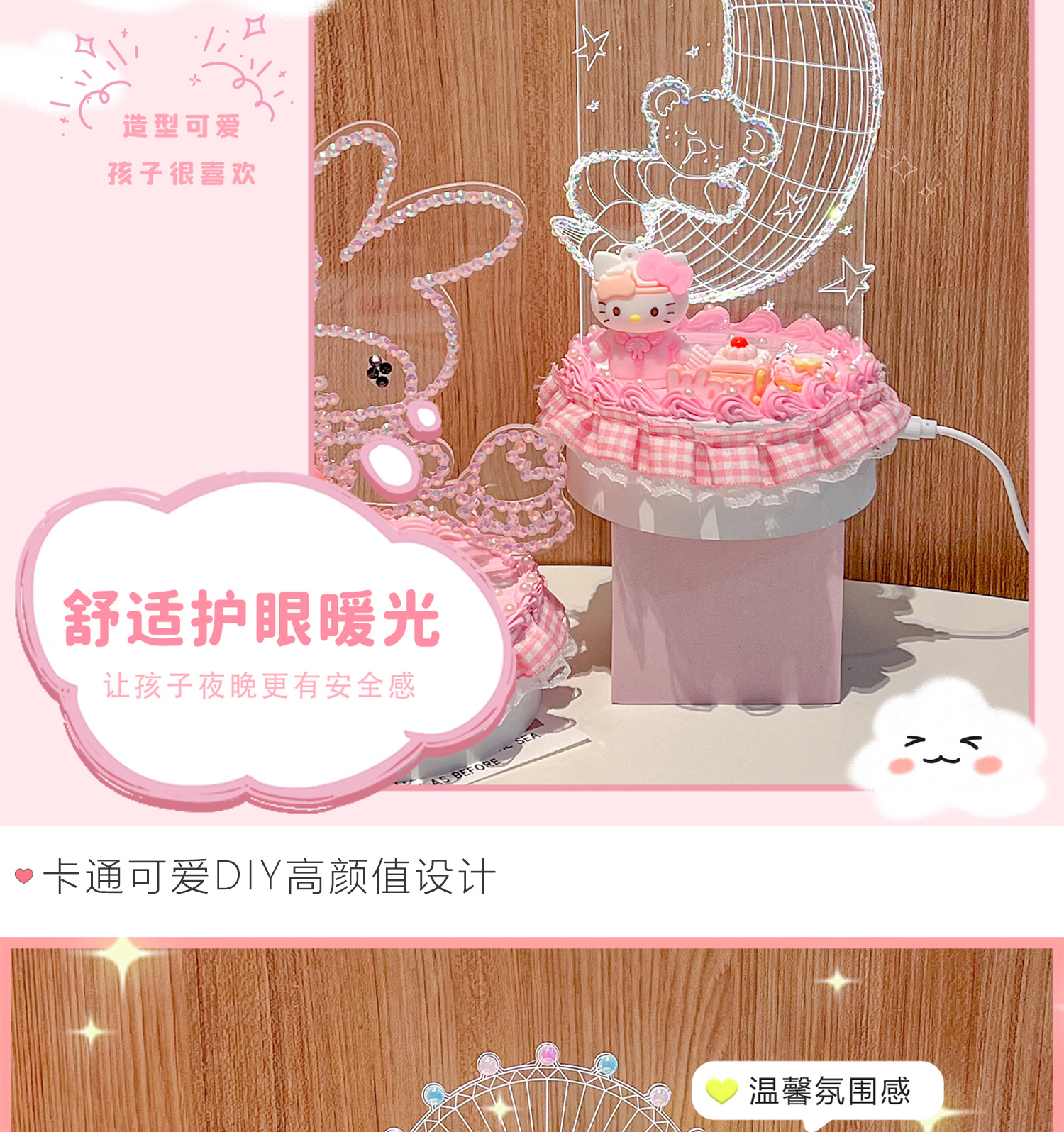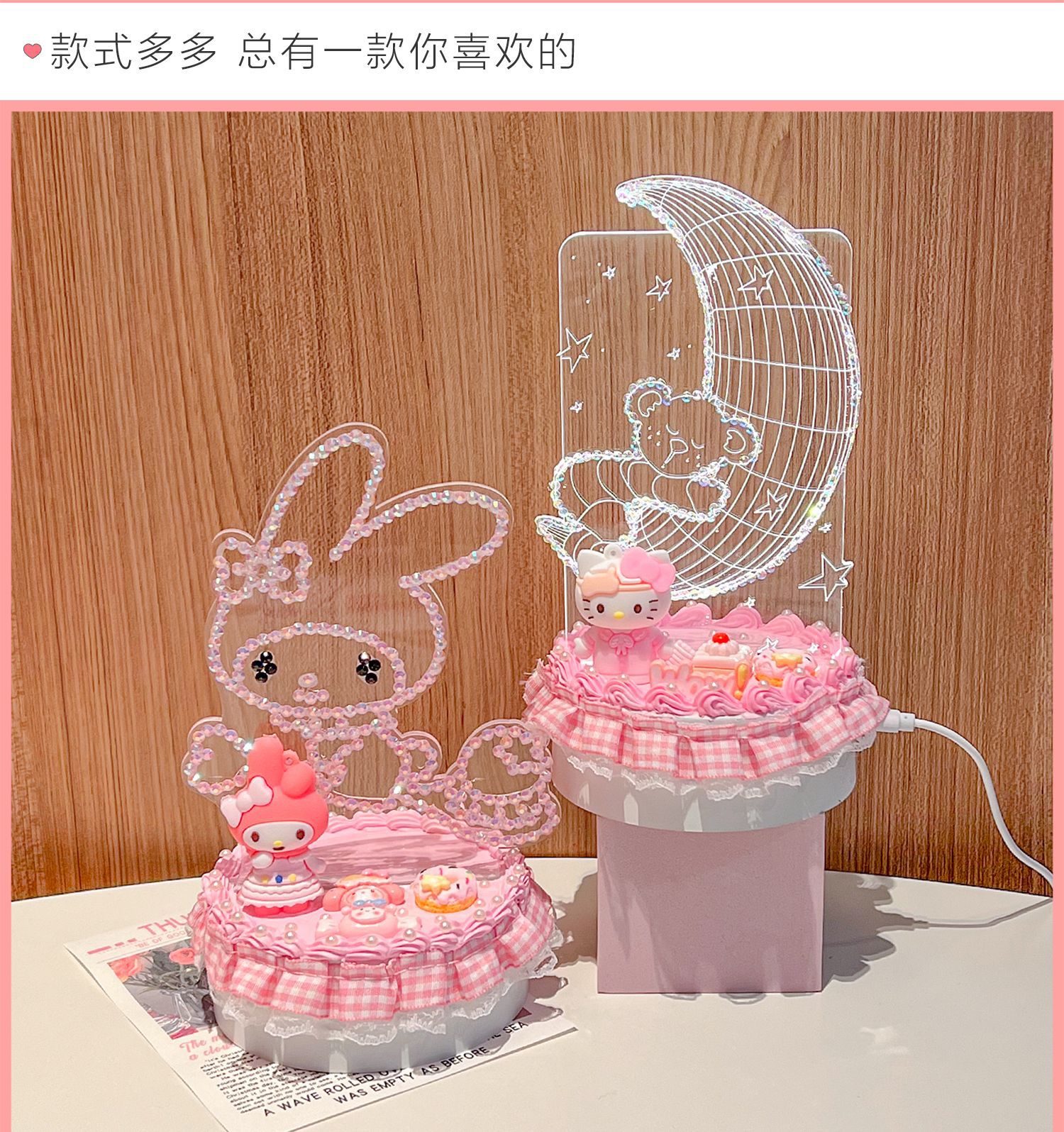 • [카드 헤드백 포장] 토끼귀 공주 3D 야간 조명 플러그인 모델 + 멜로디 소재 패키지