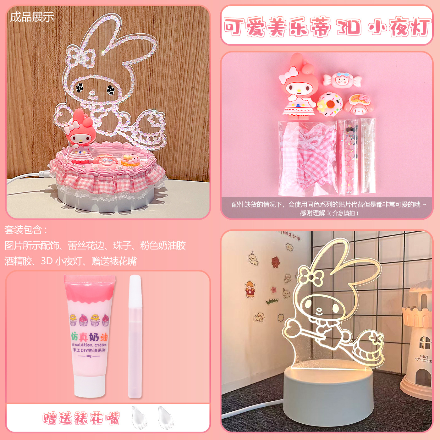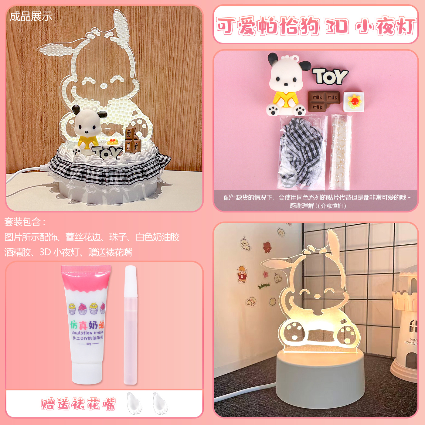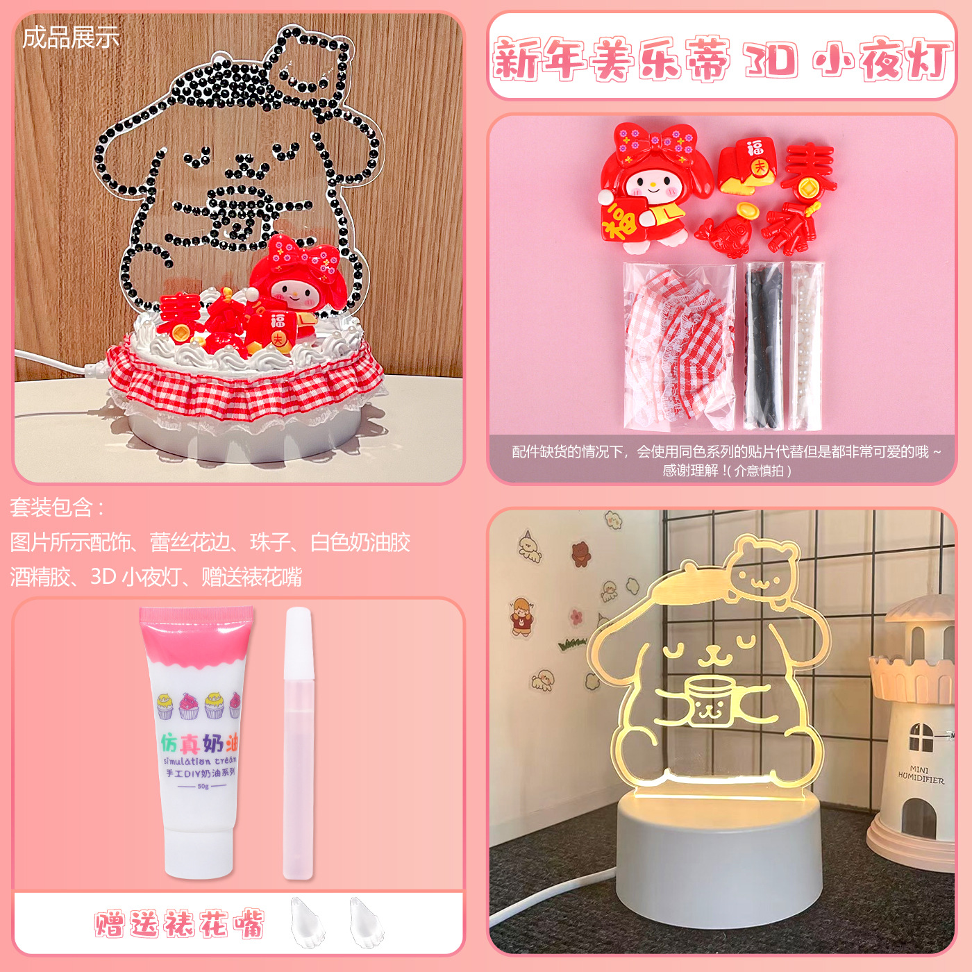 어린이 수제 DIY 크림 접착제를 전기 3d 야간 조명 pp 소재 라이브러리 로미 귀여운 데스크탑 장식품 장난감에 삽입 할 수 있습니다.