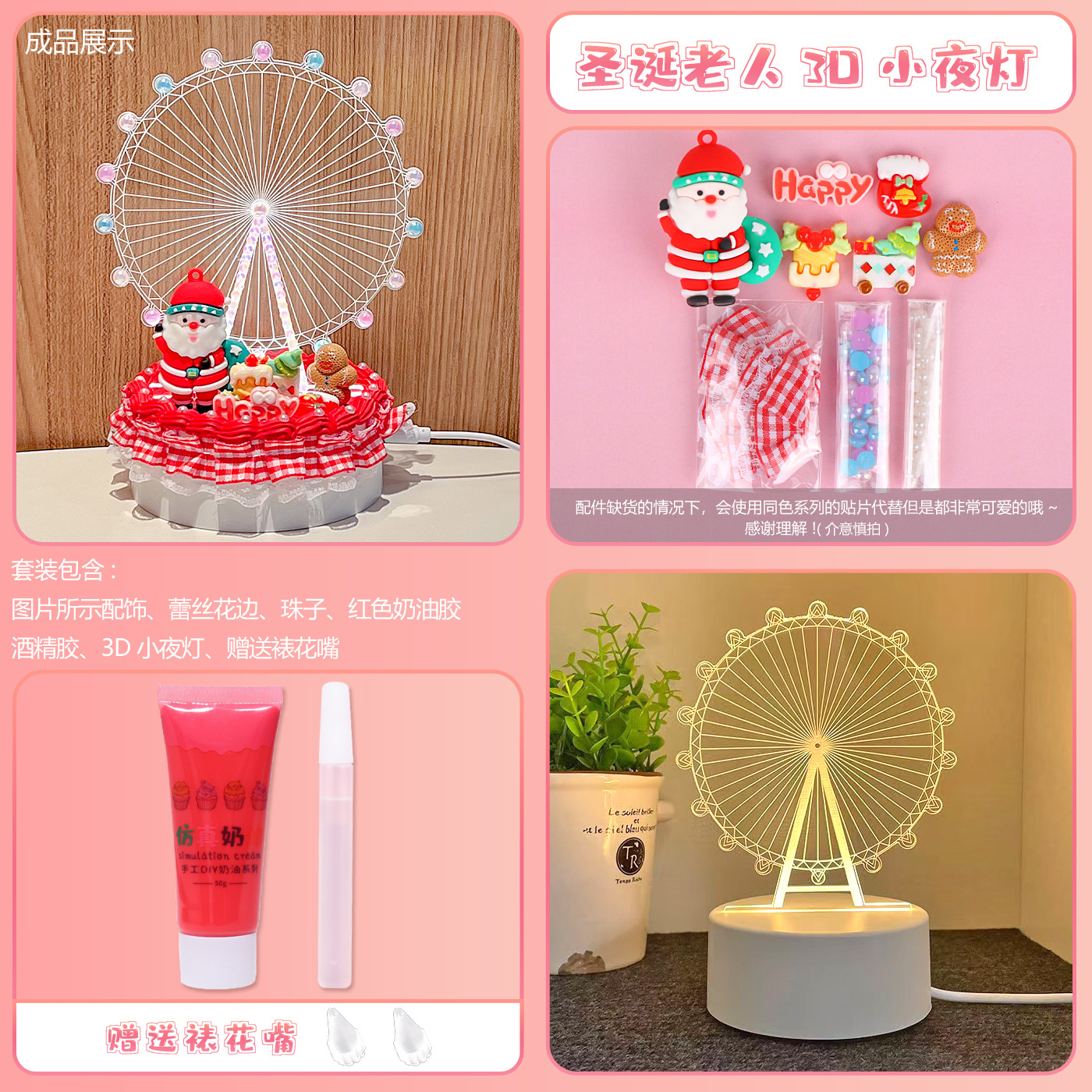 • [카드 헤드백 포장] 윈드휠 3D 야간 조명 플러그인 모델 + 산타클로스 소재 패키지