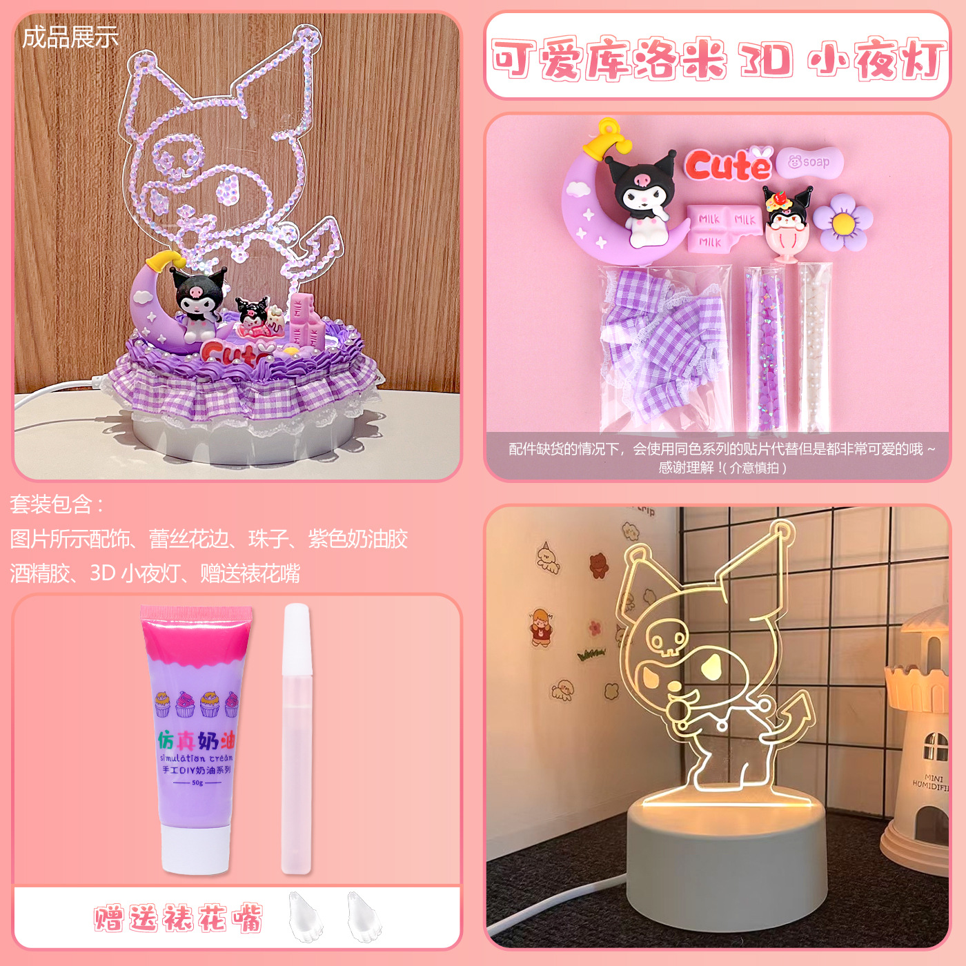 • [카드 헤드백 포장] 3D 야간 조명 플러그인 모델 + 귀여운 쿠로미 소재 패키지