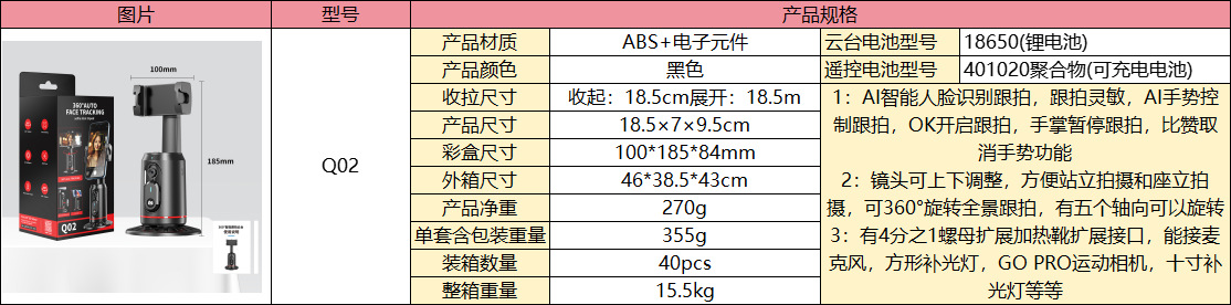 • Q02 짐벌 전자동 추적 아티팩트(조명 모델 없음)