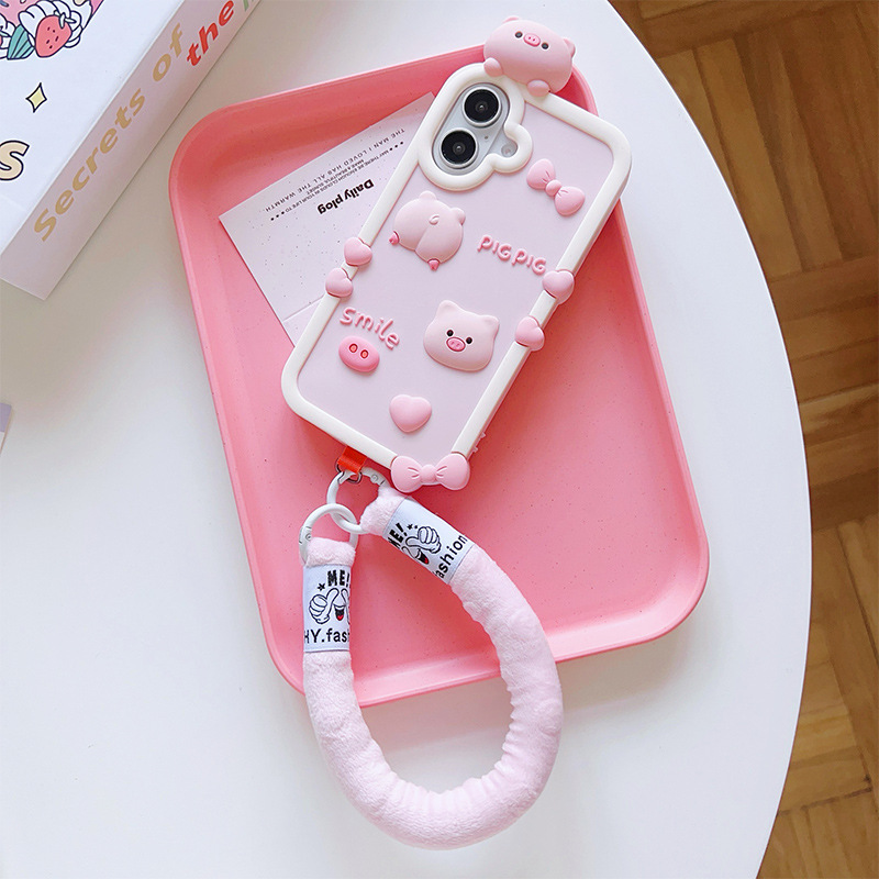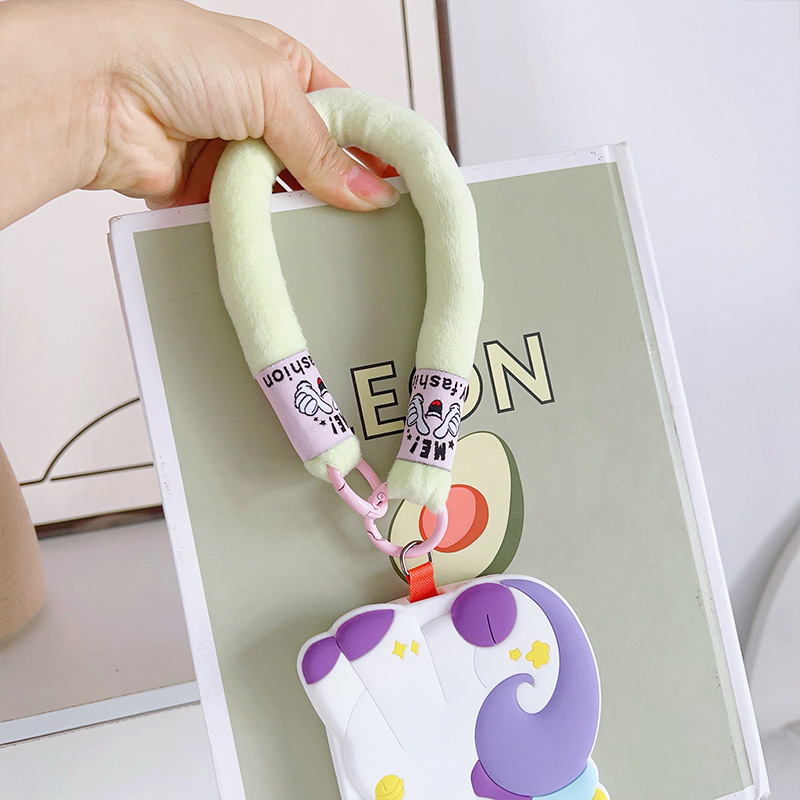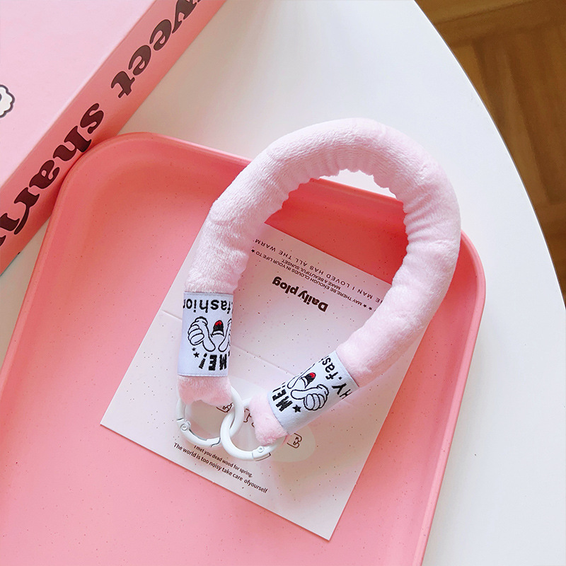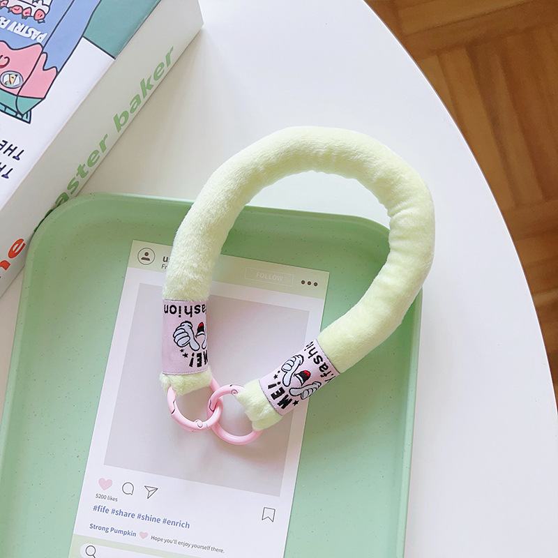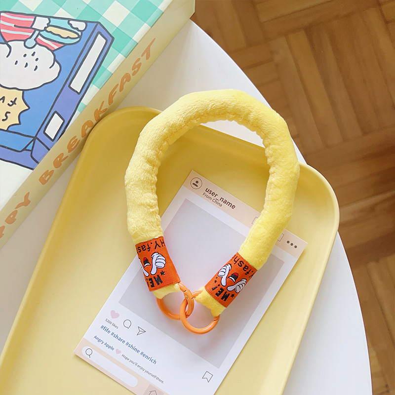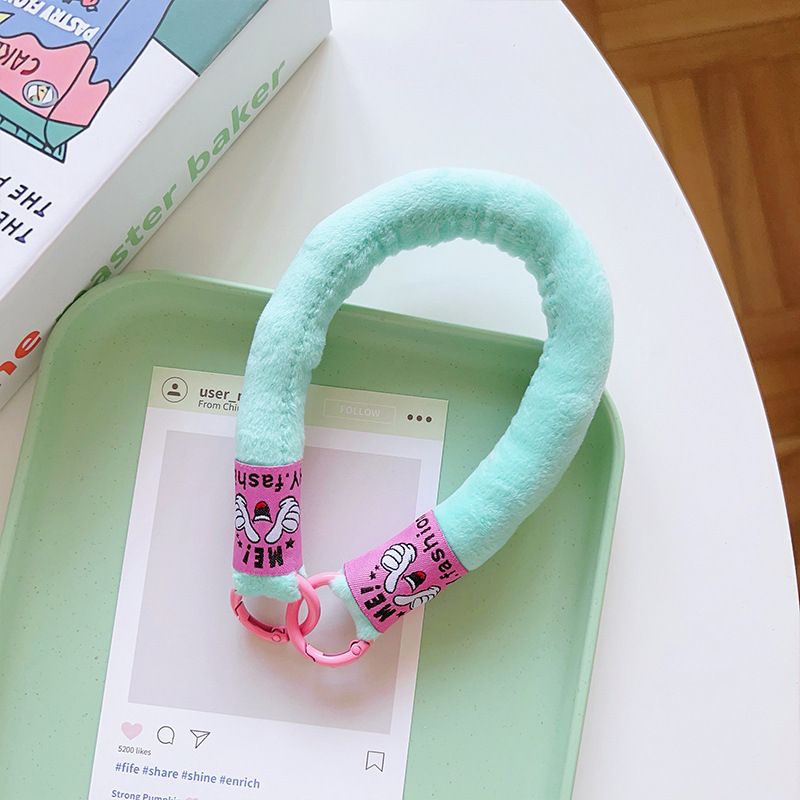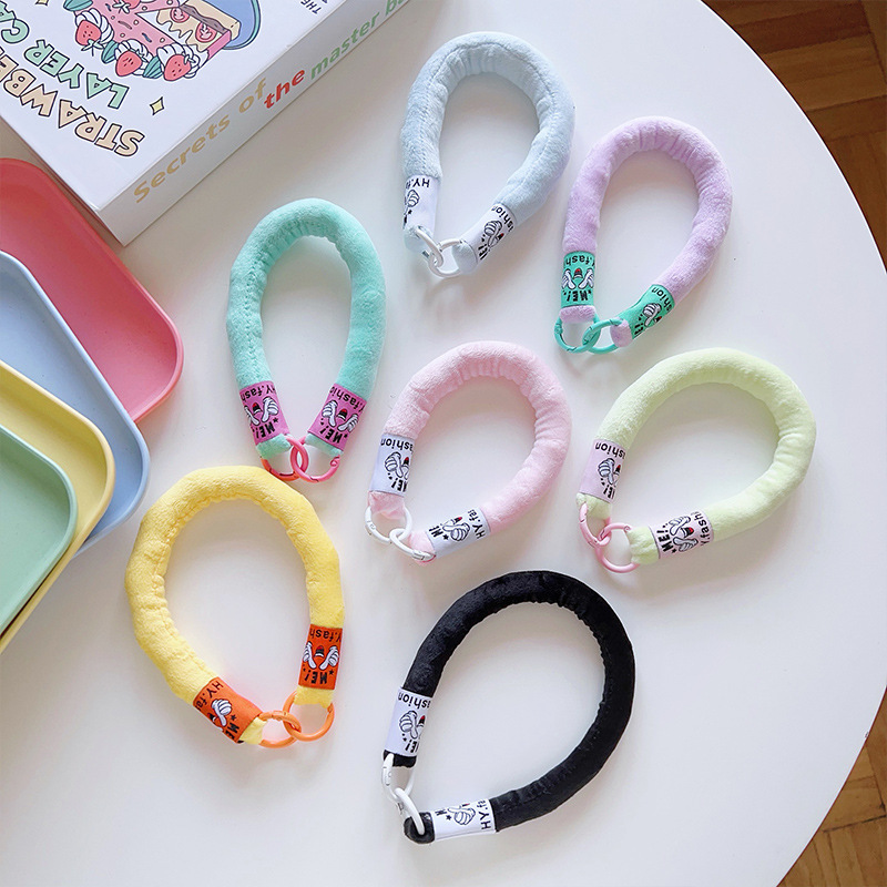 새로운 색상 여성의 봉제 귀여운 패션 라벨 도파민 끈 교수형 가방 안티 손실 강한 편안한 휴대 전화 펜던트