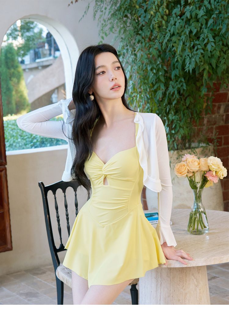 [레몬소다] 원피스 스커트 수영복 긴팔 블라우스 보수 슬림 커버 벨리 온천 휴가 수영복