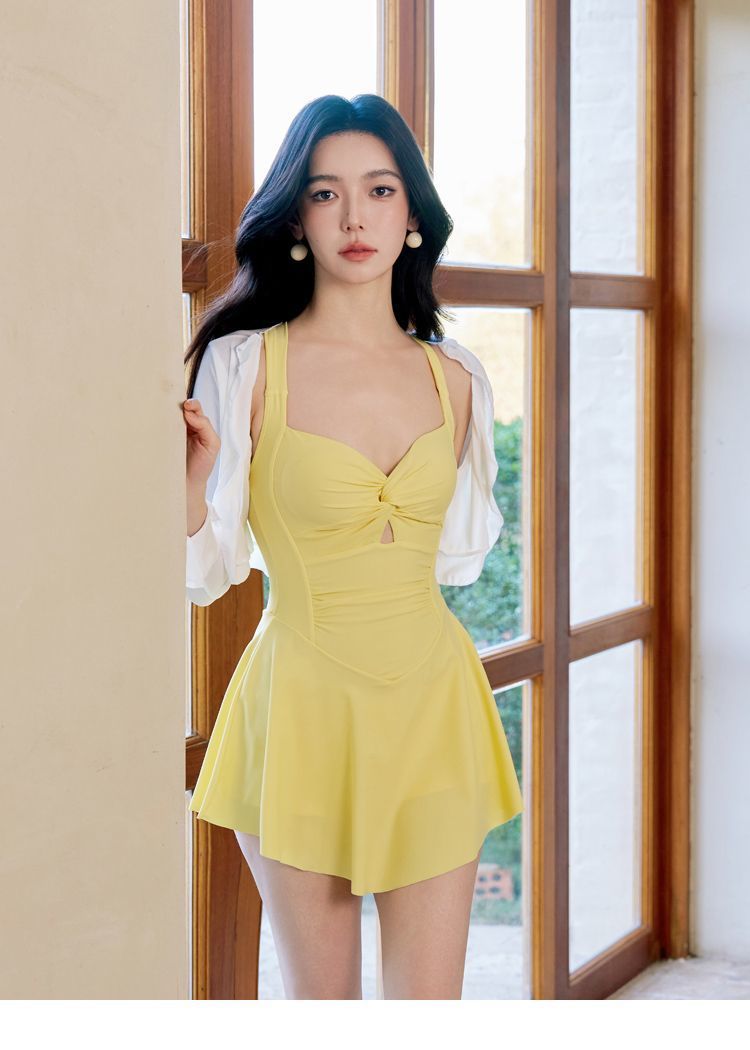 [레몬소다] 원피스 스커트 수영복 긴팔 블라우스 보수 슬림 커버 벨리 온천 휴가 수영복스토어 가기