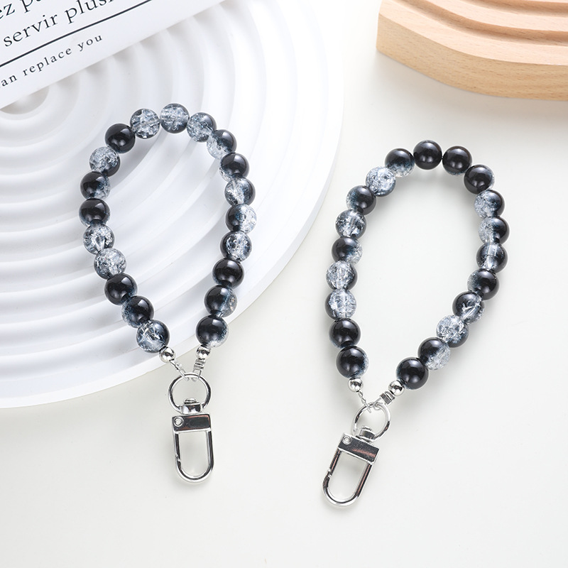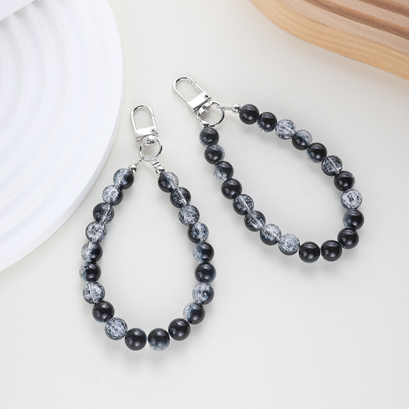 가벼운 럭셔리 흑백 잉크 구슬 짧은 휴대 전화 체인 이어폰 케이스 자동차 키 펜던트 다채로운 손목 로프 휴대용 체인 구슬