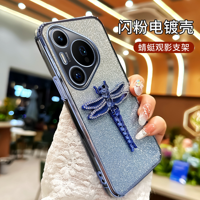 适用华为Pura70手机壳水钻蜻蜓支架电镀闪粉TPU防摔mate70PRO全包