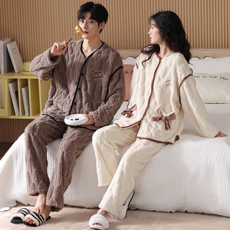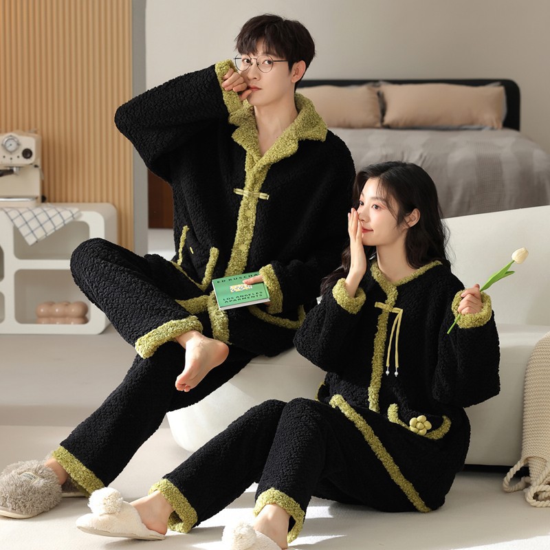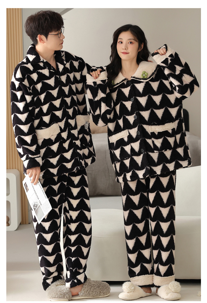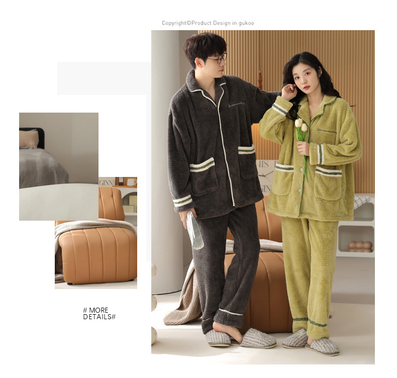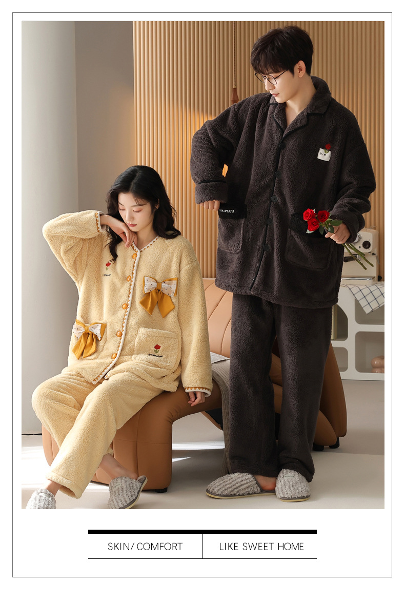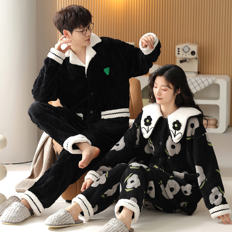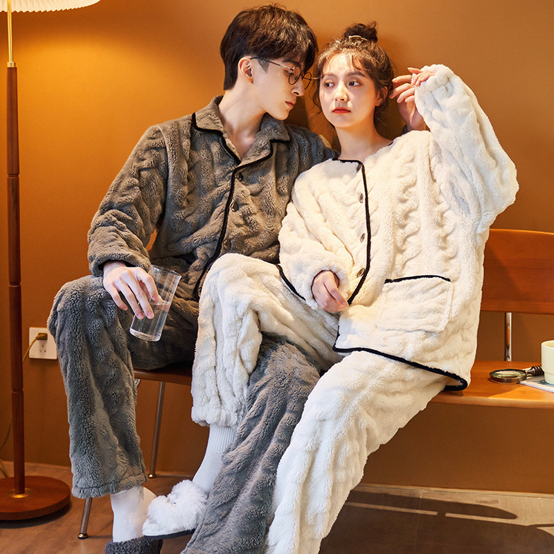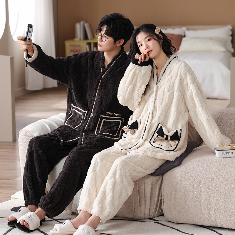 커플 잠옷 겨울 산호 양털 기모 두꺼운 남자와 여자의 플란넬 겨울 아름다운 집 옷 가을과 겨울
