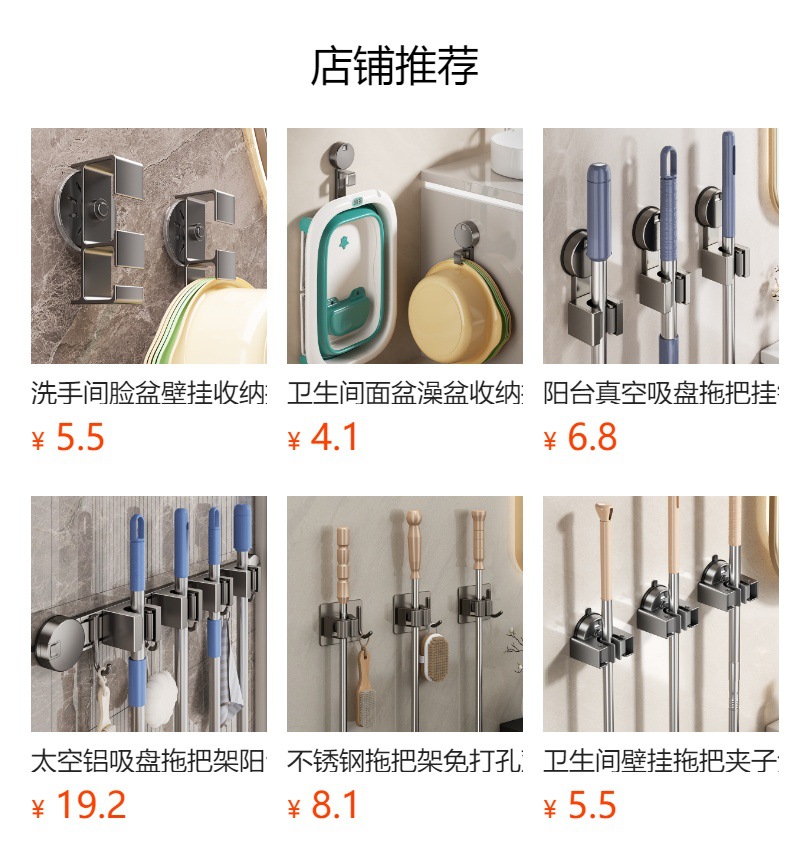 강력한 진공 흡입 컵 걸레 선반 화장실 발코니 벽 보관 랙 화장실 벽 매달린 빗자루 걸레 클립스토어 가기