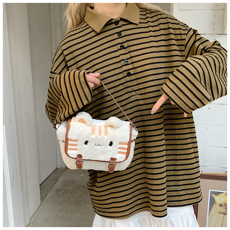 여성용 귀여운 봉제 여성 가방 틈새 디자인 여성 맞춤형 만화 작은 광장 가방 달콤한 신선한 고양이 패션 크로스 바디 가방스토어 가기
