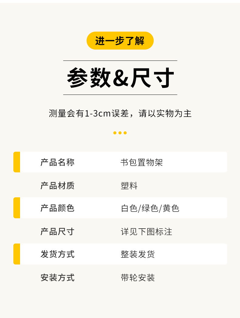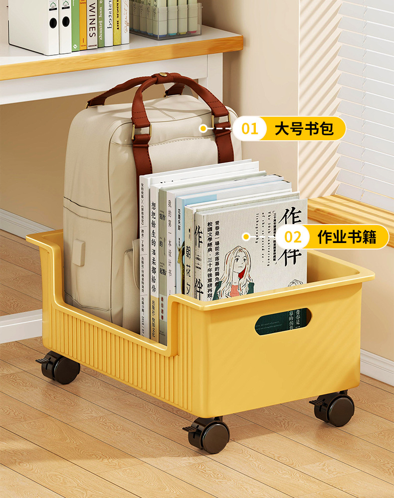 학교 가방 보관 랙 움직일 수있는 카트 책 보관 랙 아티팩트 홈 스터디 테이블 사이드 학교 가방 풀리 캐비닛