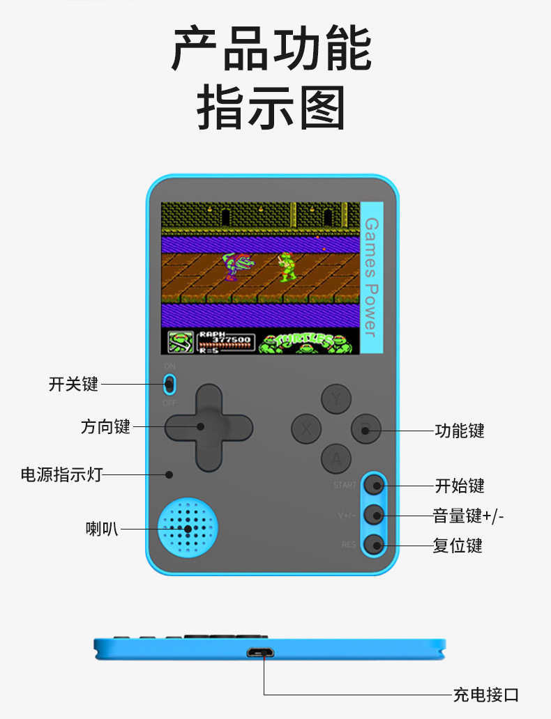 K10 새로운 레트로 카드 500 미니 핸드 헬드 게임 기계 어린 시절 향수 콘트라 십대 돌연변이 닌자 거북이 아케이드