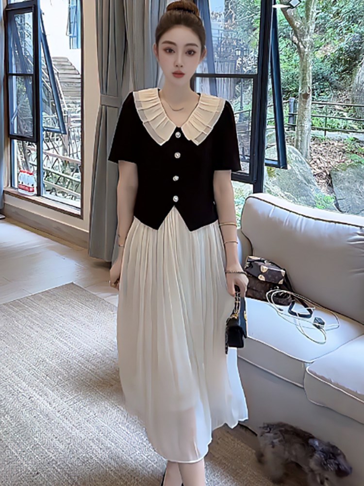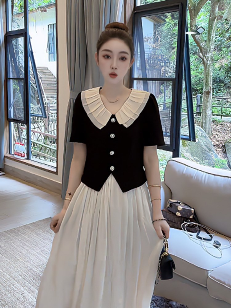 프랑스 우아한 하이 엔드 패션 원피스 여성 여름 세트 인형 반팔 최고 치마 투피스 세트