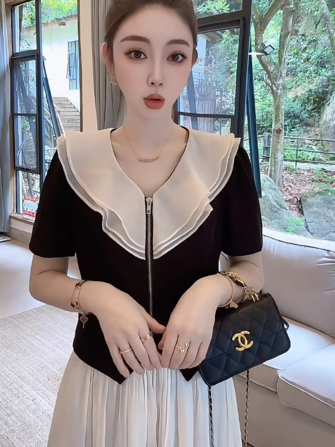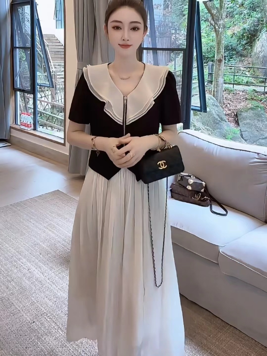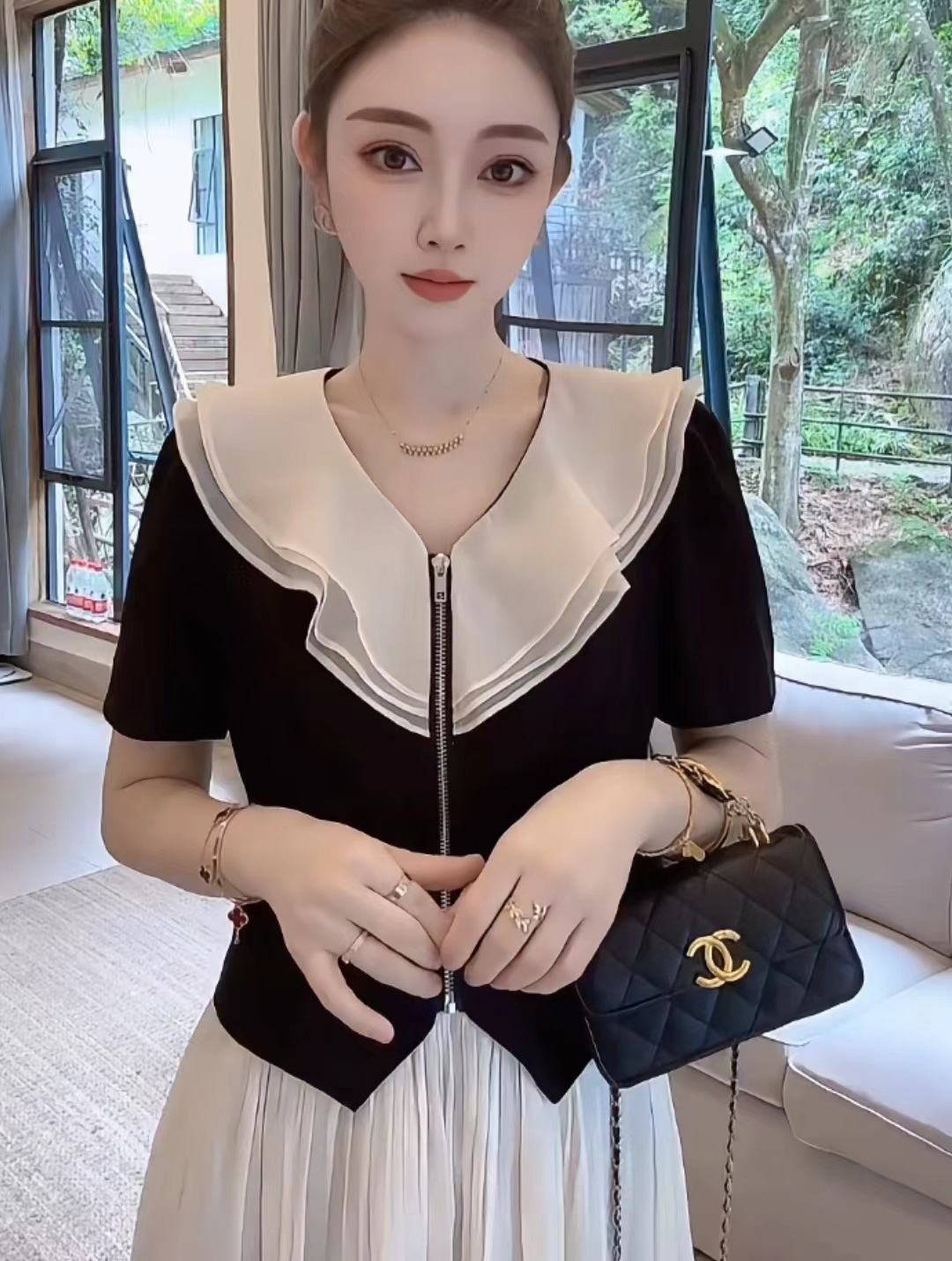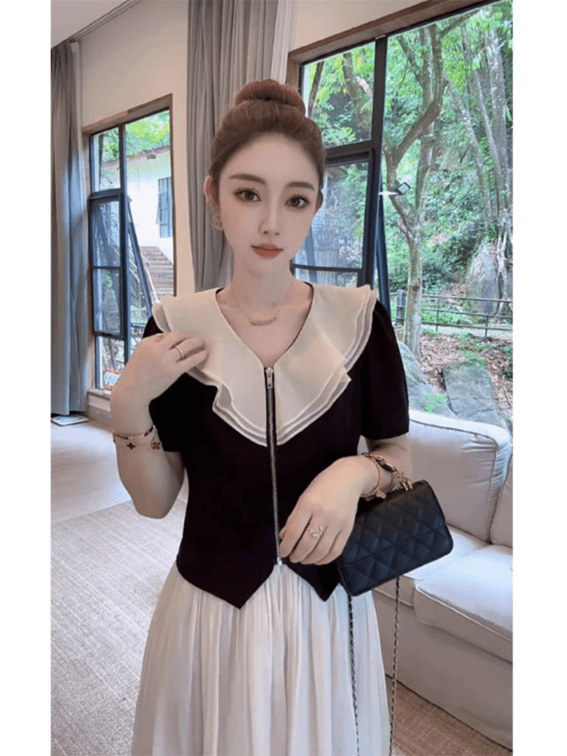 프랑스 우아한 하이 엔드 패션 원피스 여성 여름 세트 인형 반팔 최고 치마 투피스 세트스토어 가기