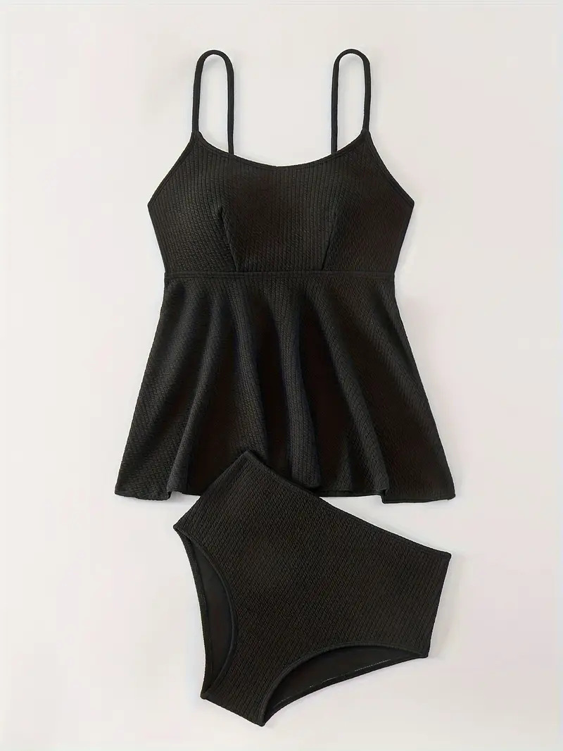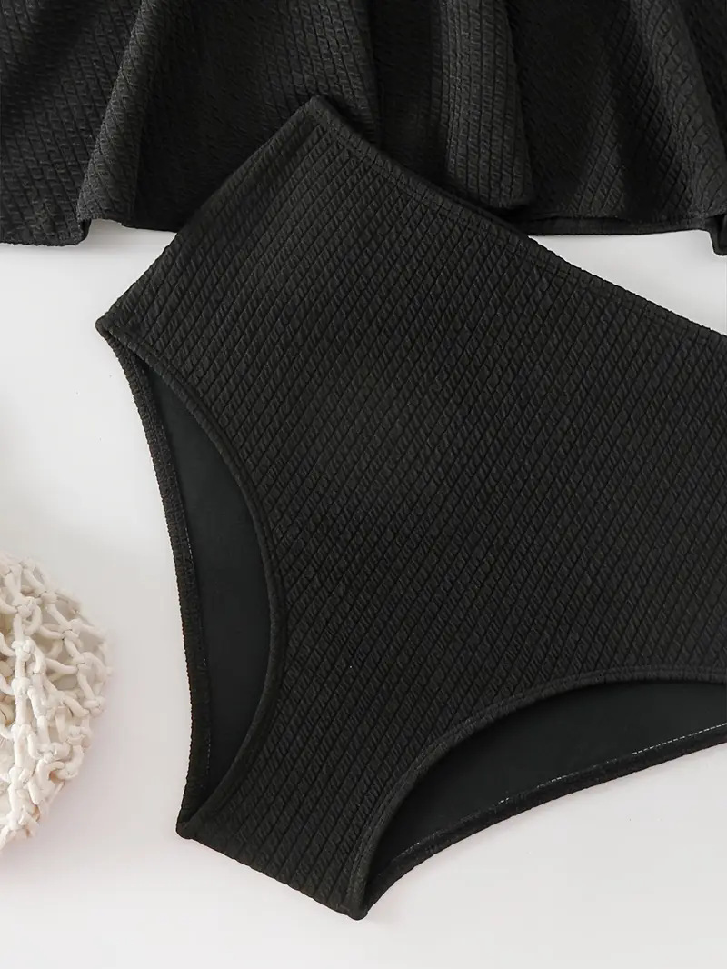 2024跨境新款时尚性感遮肚显瘦修身女士坦基尼套装特殊面料游泳衣