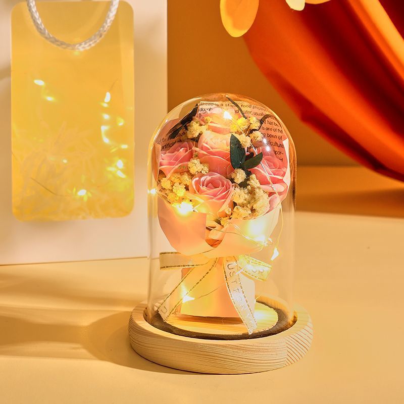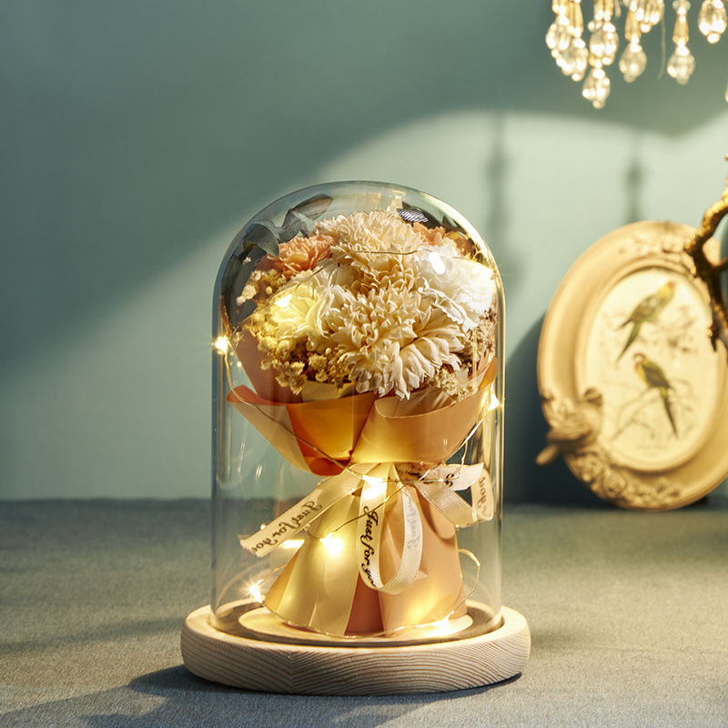 유리 커버 시뮬레이션 꽃다발 말린 꽃 생일 새해 여자 친구 어머니 장미 크리스마스 선물 아이스 블루 영원한 꽃