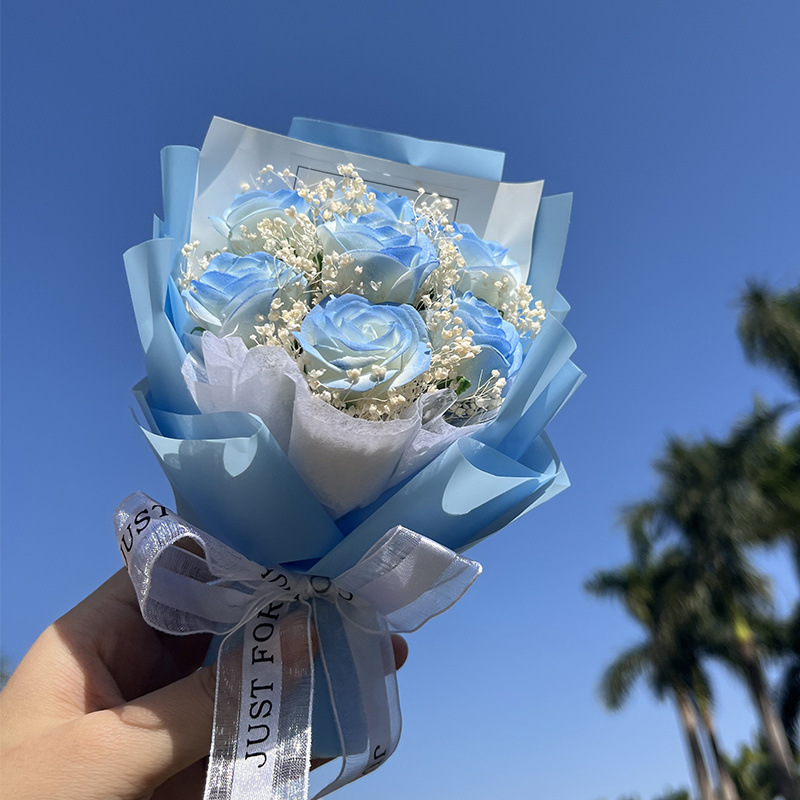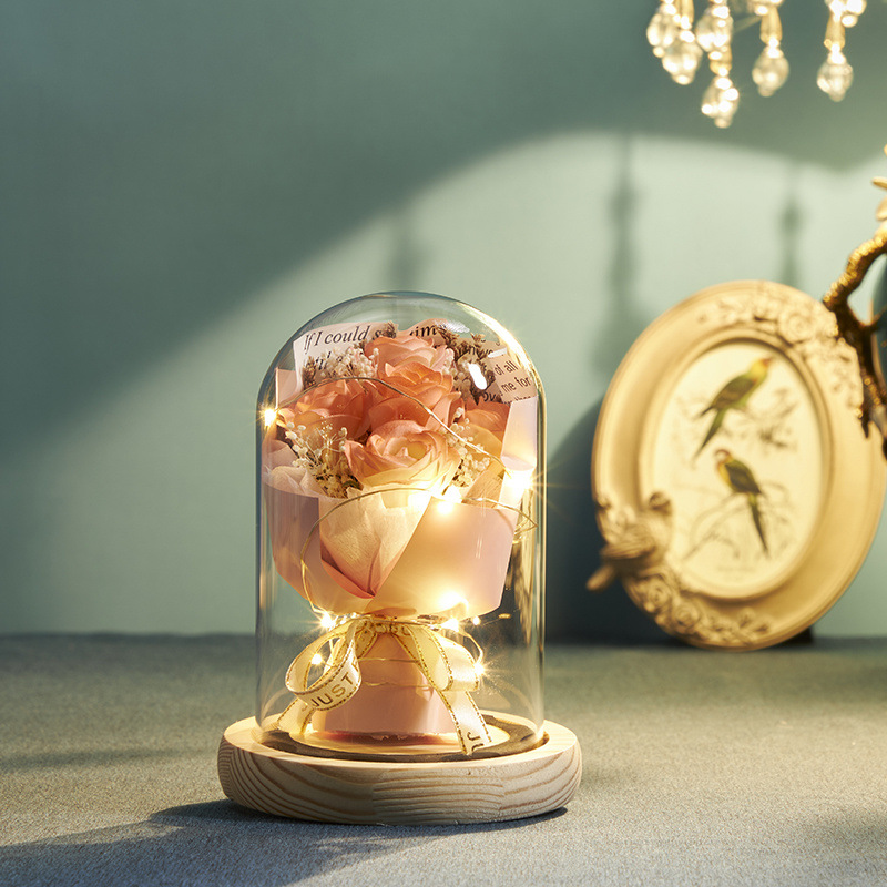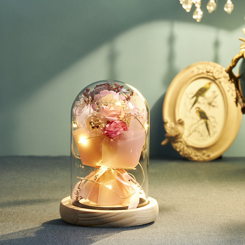 유리 커버 시뮬레이션 꽃다발 말린 꽃 생일 새해 여자 친구 어머니 장미 크리스마스 선물 아이스 블루 영원한 꽃스토어 가기