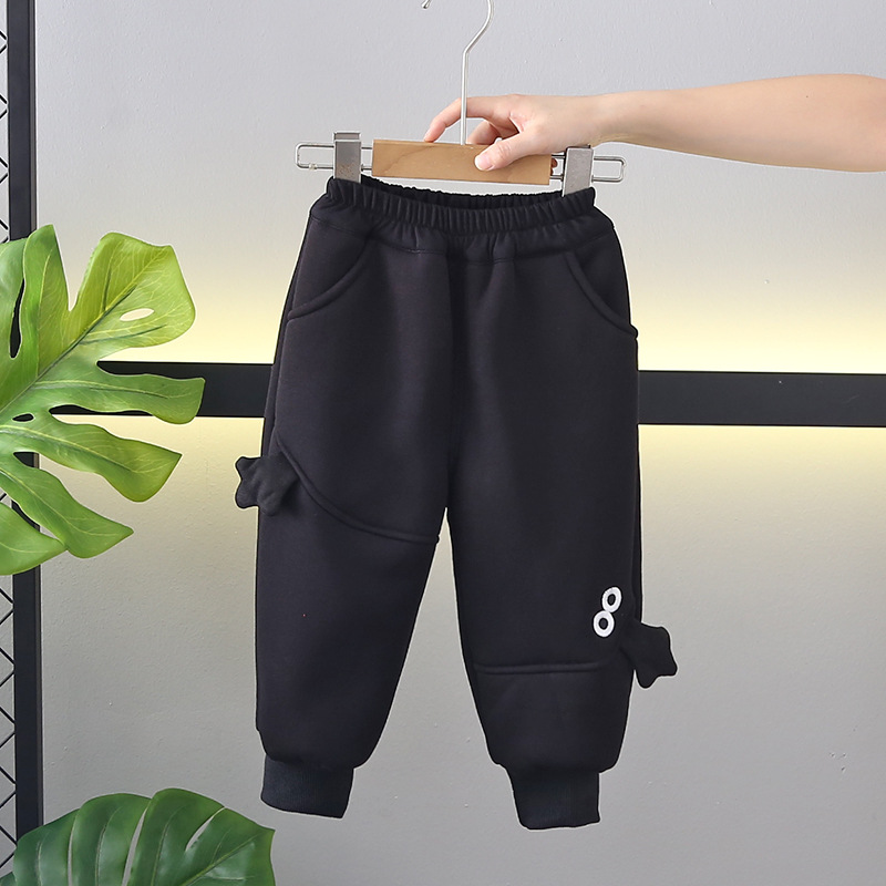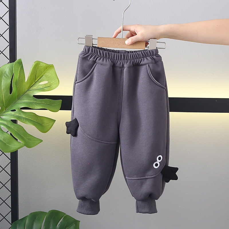 2024 새로운 겨울 바지 아기 기모 소년 만화 두꺼운 어린이 면 바지 유행